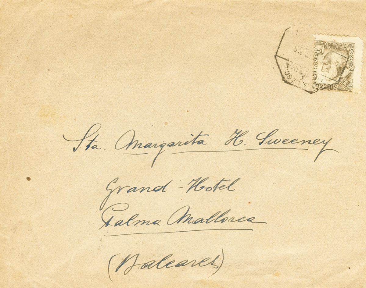 ★★/★ 680. 1934. Set that includes the standard stamp with fixing and clear dot and a block of four without fixing, a pair and a block of four IMPERFORATED, both without fixing, as well as a letter addressed to Palma de Mallorca. MAGNIFICENT. Edifil 2020: 690 Euros