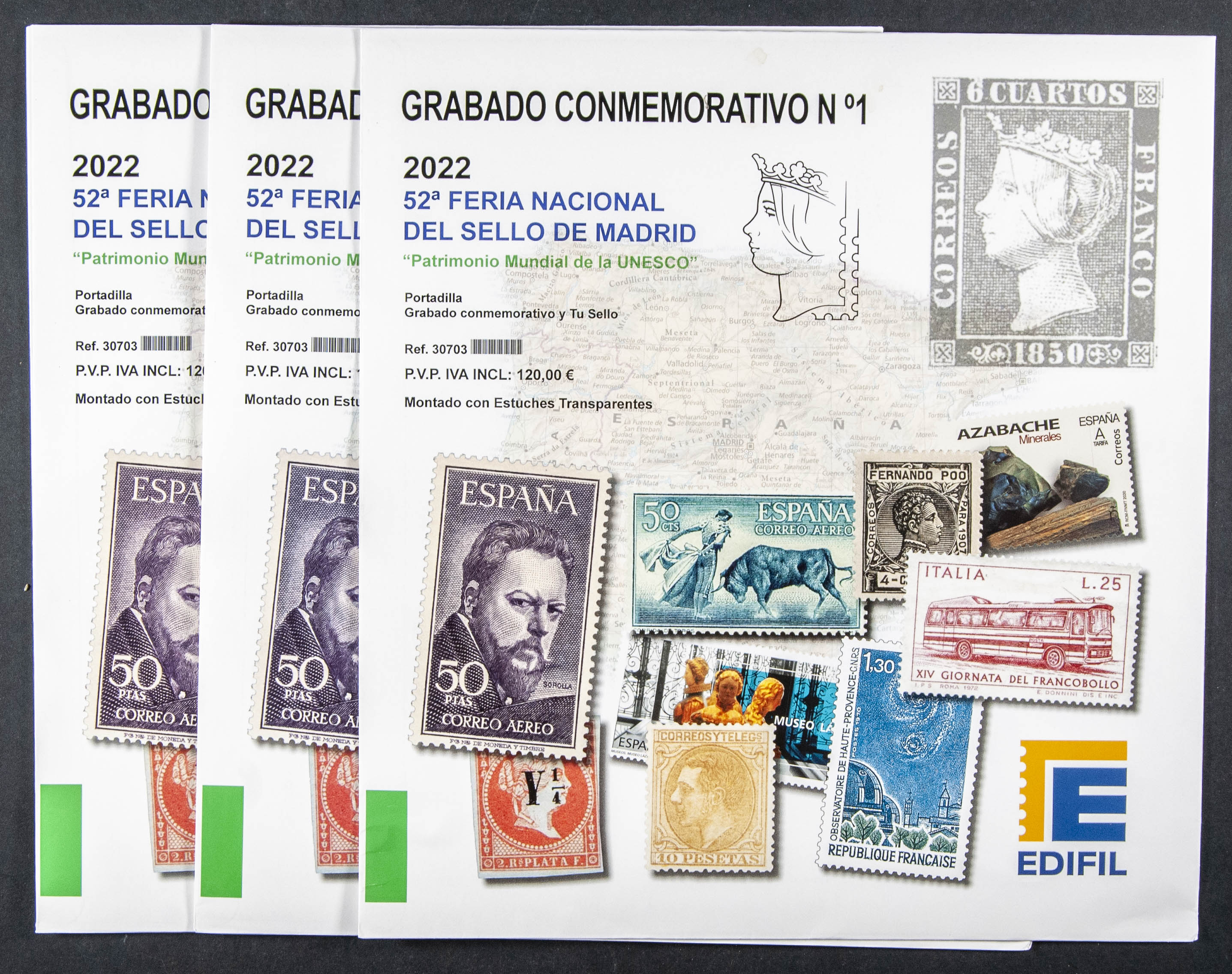 (★)2022. Set of three COMMEMORATIVE ENGRAVINGS Nº1 of the 52nd National Stamp Fair. MAGNIFICENT.