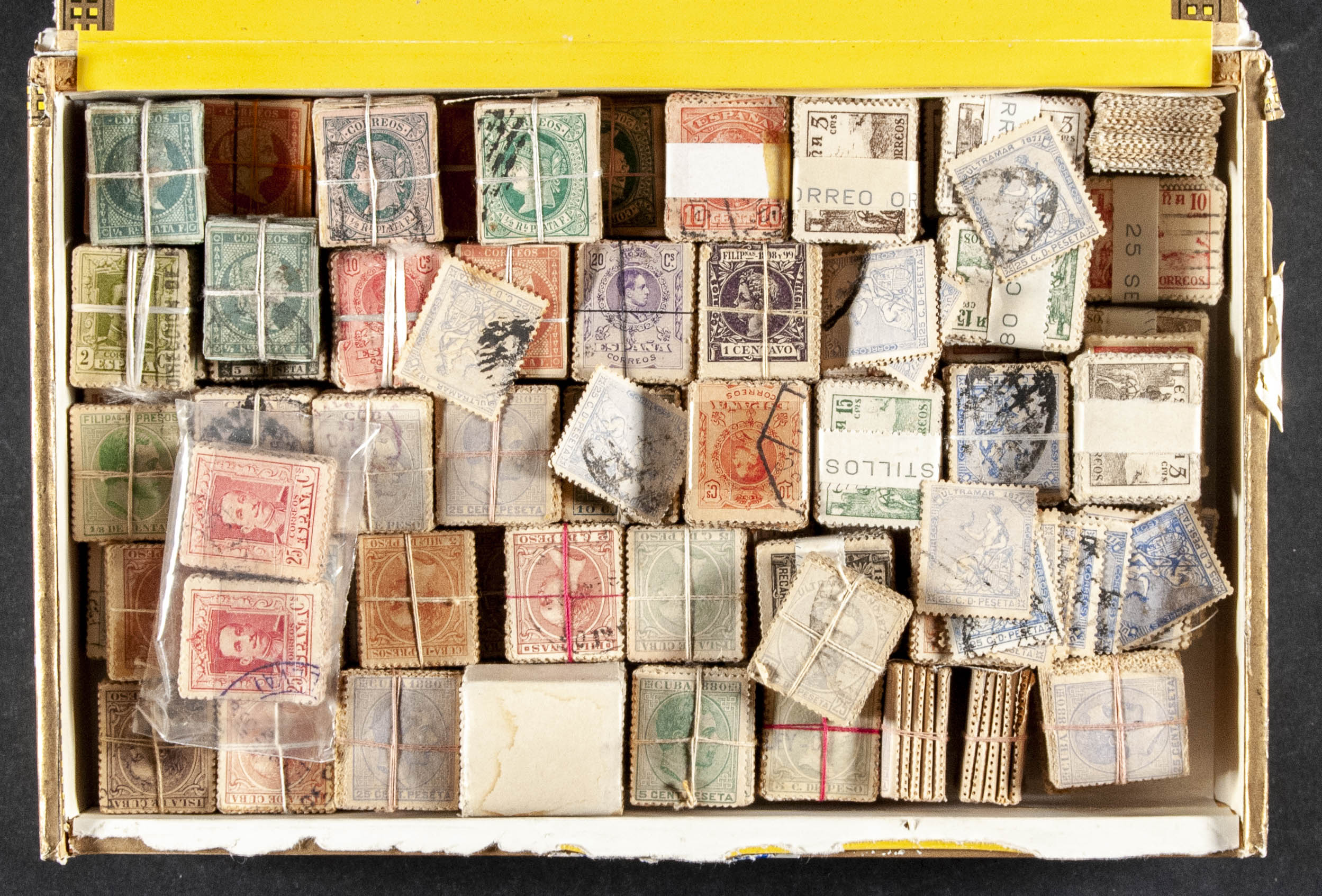 (1890ca). Interesting set of more than twenty-five thousand stamps in packs of one hundred (there are some with more), most of the stamps issued by Alfonso XII and Alfonso XIII, including some classic stamps and those from the Antilles and Cuba (some unopened). . TO EXAMINE.