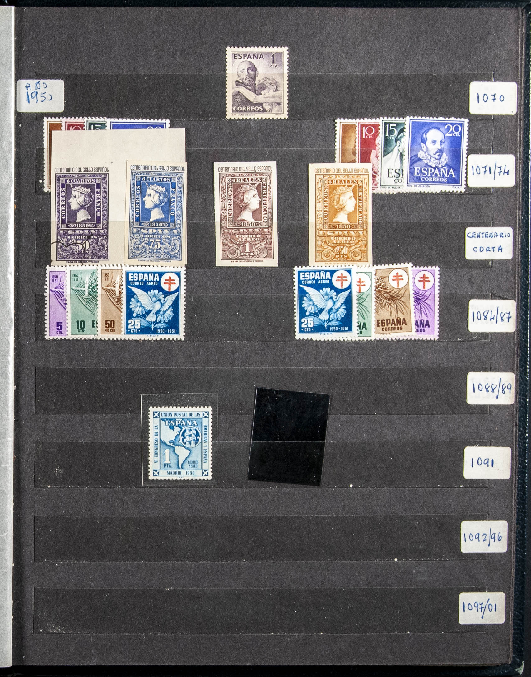 ★★/★(1950ca). Set of complete series and some individual stamps of the 2nd Centenary between 1950 and 1965, most of them new without fixed stamps, includes some later block sheets, series of the South plan of Valencia and triptychs of Franco and the King, some repetitions. TO EXAMINE.