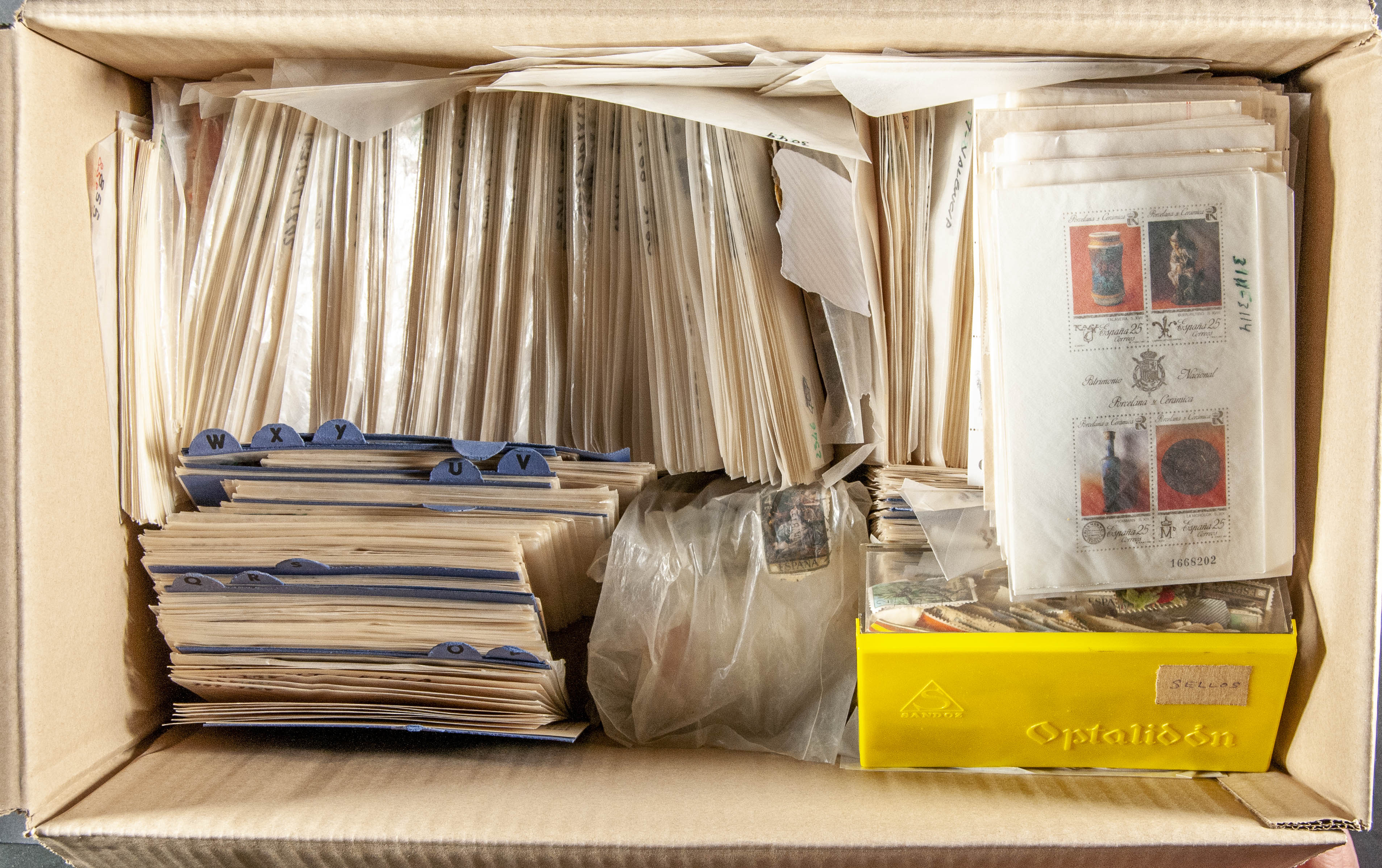 ★★/(1960ca). Set of thousands of stamps from Spain and abroad from various periods, most of them from 1960, used and including numerous covers with complete series (several of regional costumes) and block sheets, as well as stamps of the Europe Theme of the eighties, in new and a commemorative book of the XI National Stamp Fair. TO EXAMINE.