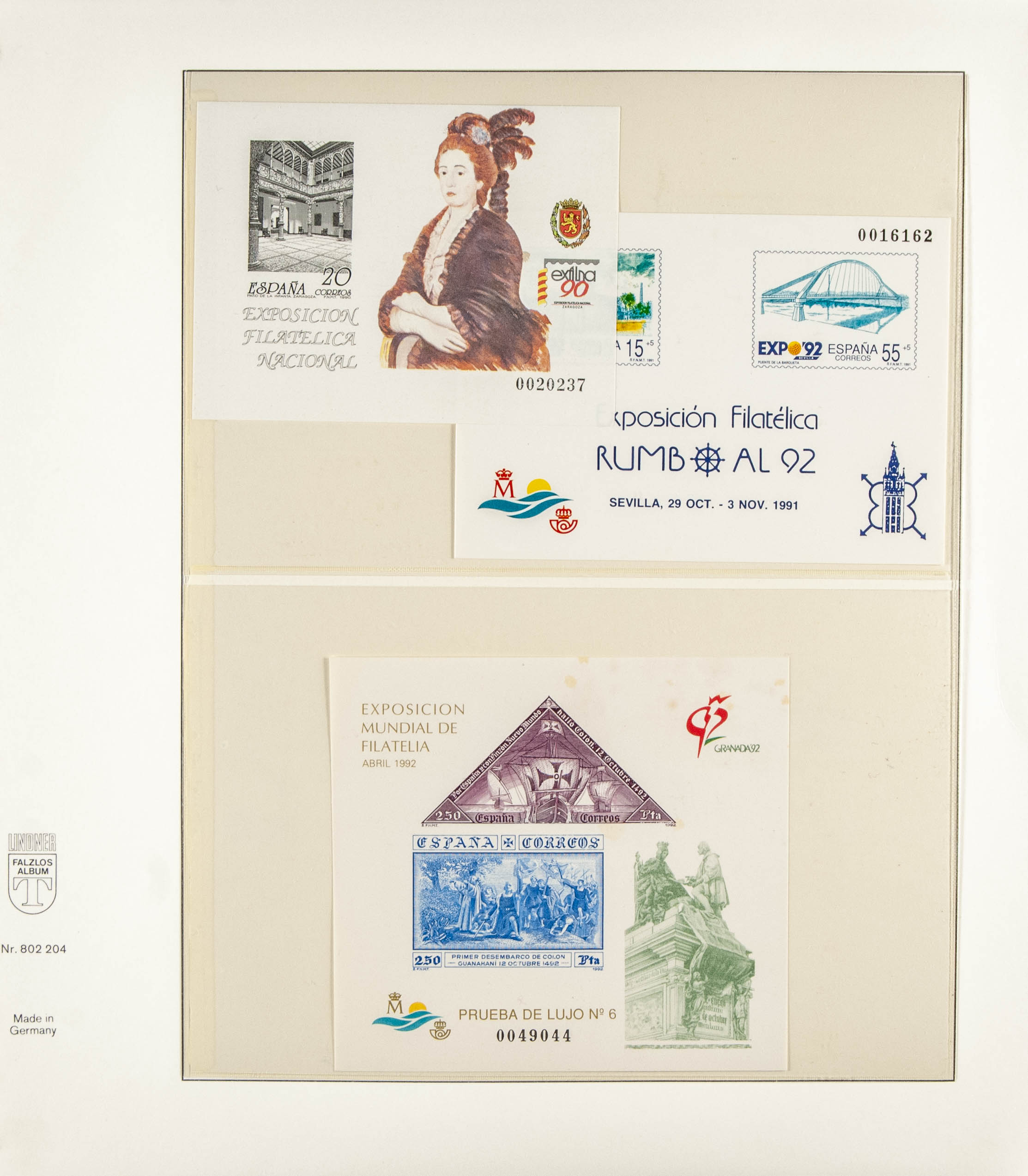 English (1990ca). Collection of Luxury Tests between 1990 and 2014, in the absence of Autonomies, 150th Anniversary Card of the First Spanish Seal and some unimportant intermediate. TO EXAMINE. Edifil 2023: +1,000 Euros