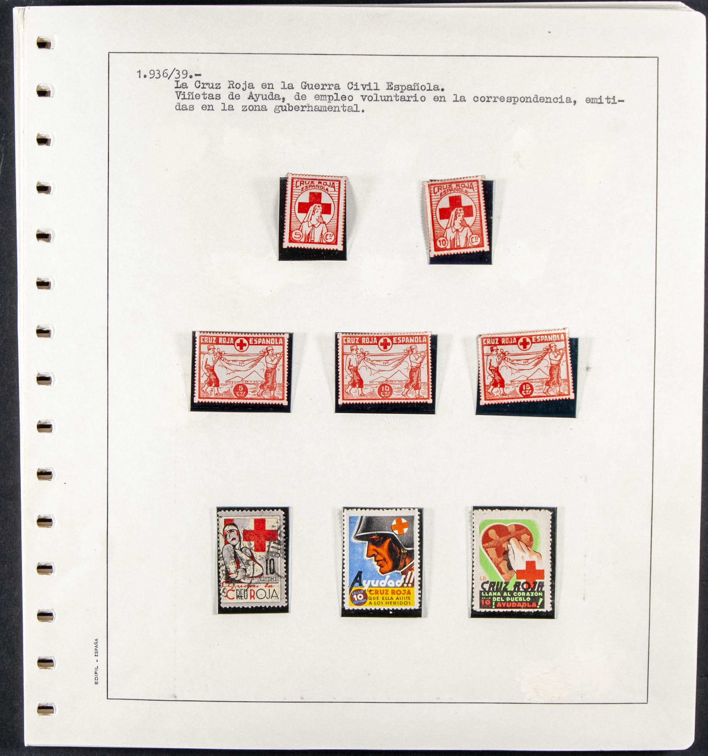 ★/(1936ca). Interesting set of Red Cross Charitable Local Stamps and Political Cartoons, most issued during the Civil War, new and used, including nine letters related to or addressed to the Red Cross, a response document and First Day Covers between 1958 and 1982 with Red Cross postmark. TO EXAMINE.