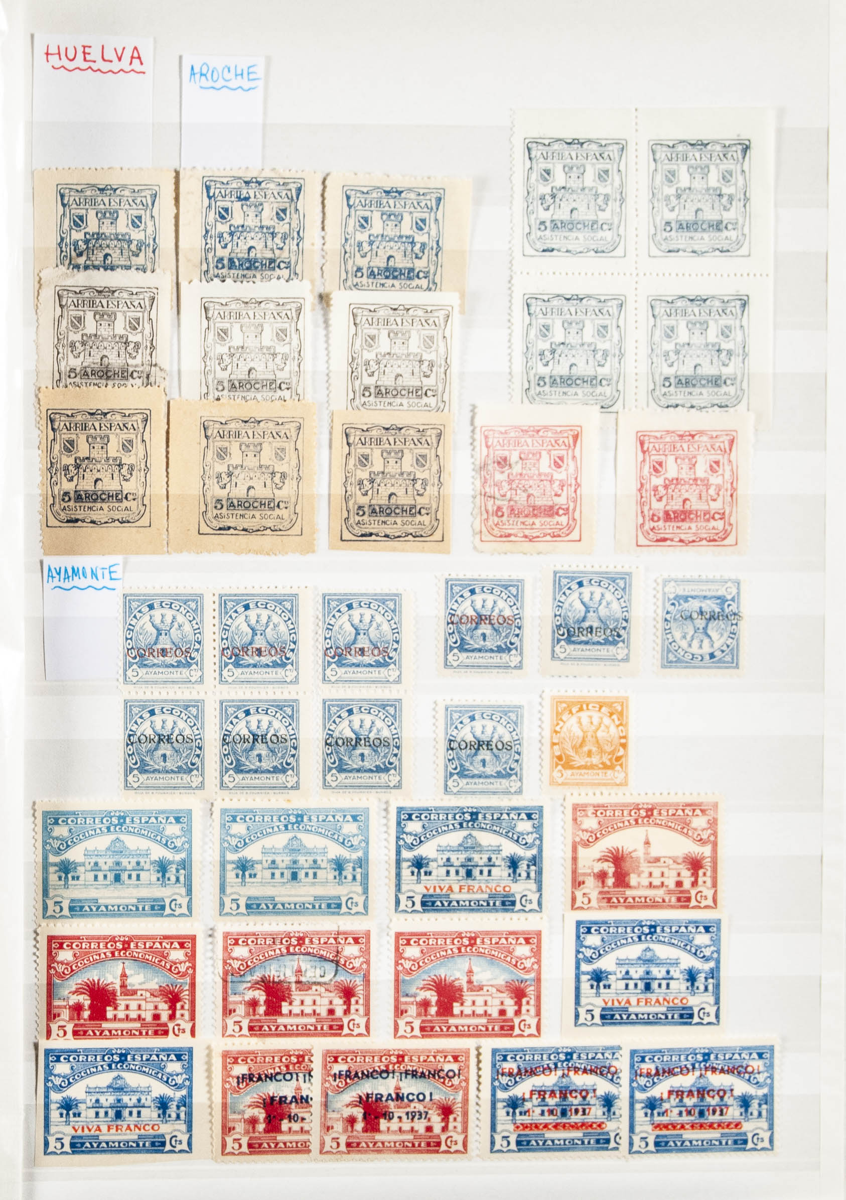 (★)/(1936ca). Interesting set-collection of Local Charity stamps from six Andalusian provinces, Cádiz, Córdoba, Huelva, Granada, Málaga and Sevilla, new (mostly) and used, including block sheets and some blocks of four. ESSENTIAL TO EXAMINE.