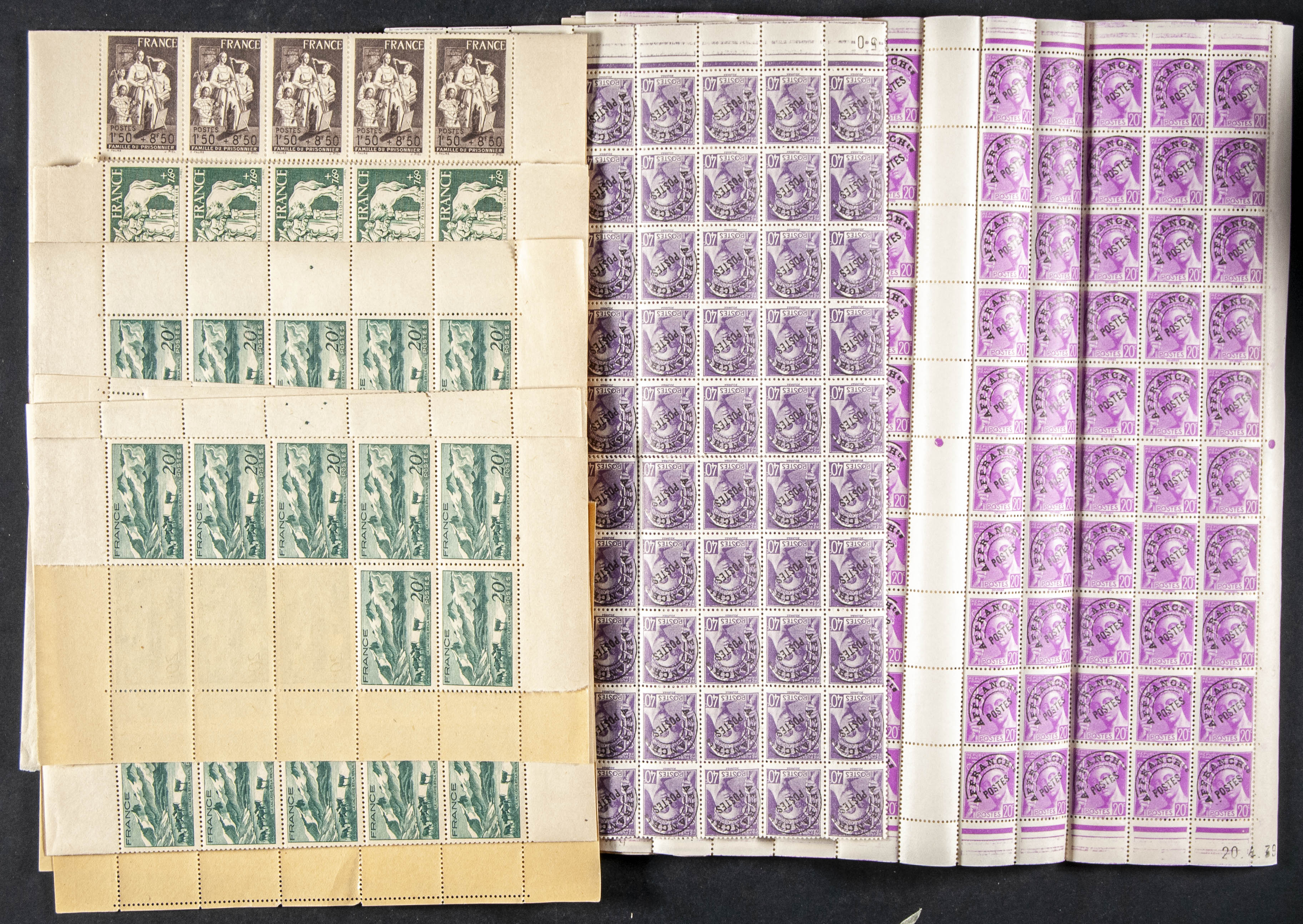 ★★/★(1910ca). Set of loose stamps and complete series of France between 1910 and 1970, in new (some used), some repeated in quantity greater than one hundred stamps and most without fixed stamps. TO EXAMINE.
