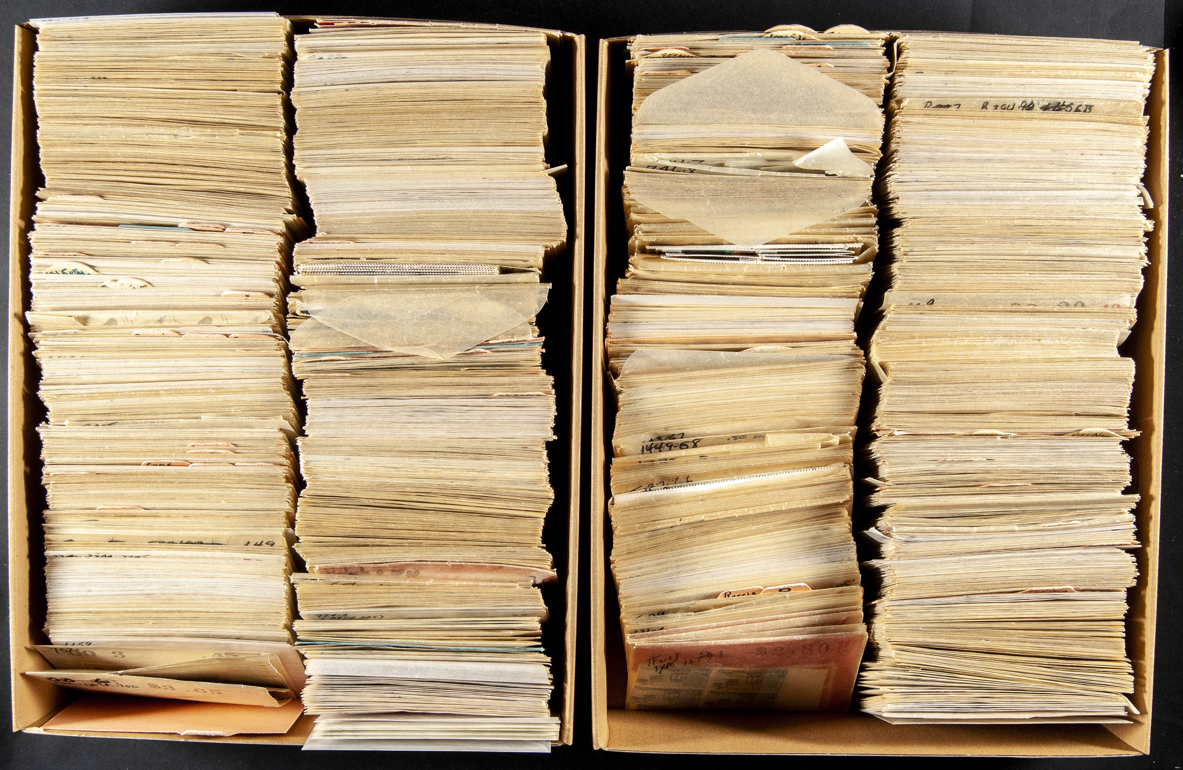 ★★/(1960ca). Interesting set of thousands of complete series and single stamps from various countries in new (some used), mounted in glass envelopes with indication of the Scott catalog numbering. HIGH CATALOG VALUE. TO EXAMINE.