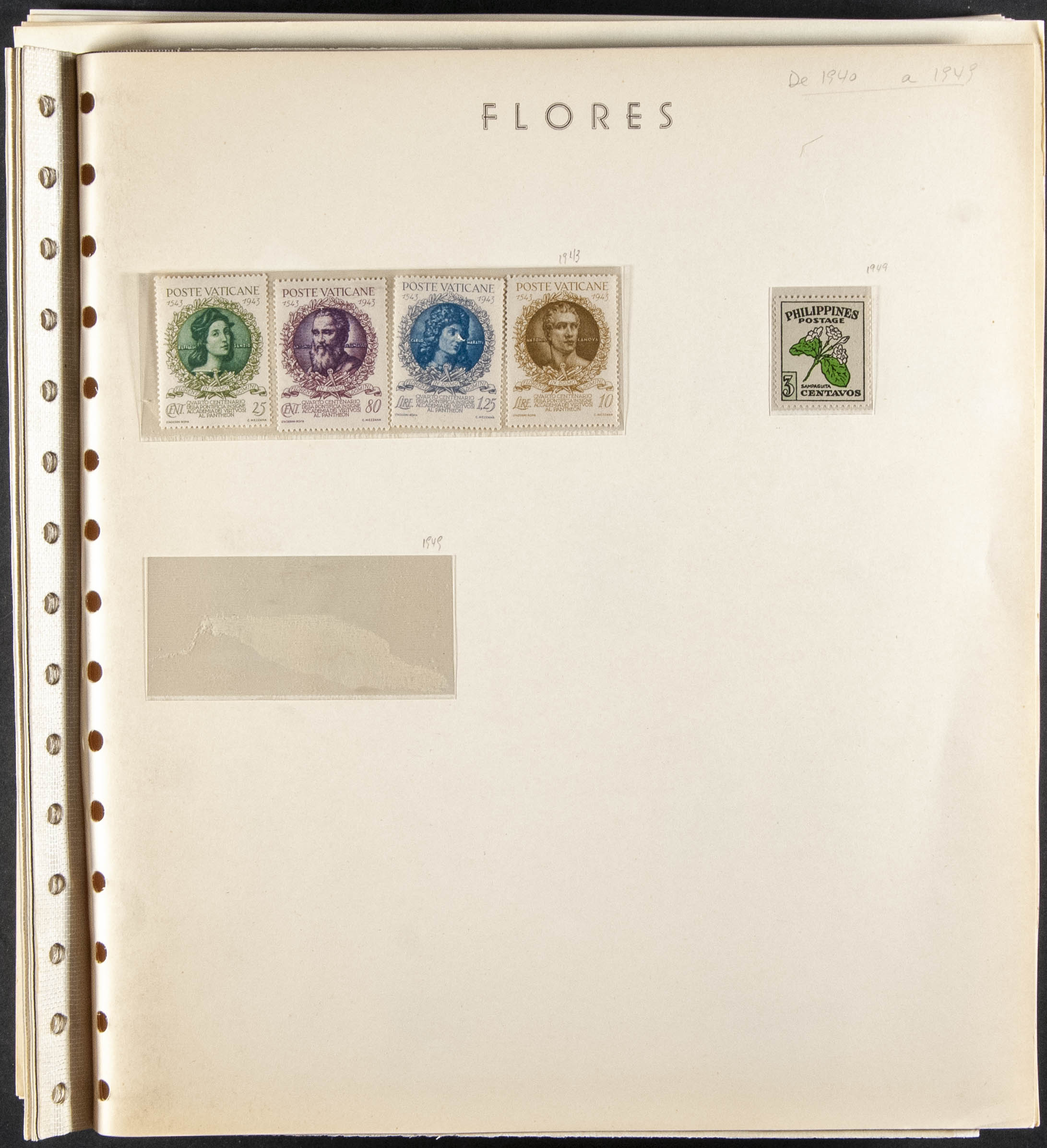 English ★★/★(1943ca). Interesting rest of Flora's thematic collection between 1943 and 1986, new and assembled in an album (some series on index cards or binder sheets). HIGH CATALOG VALUE. TO EXAMINE.