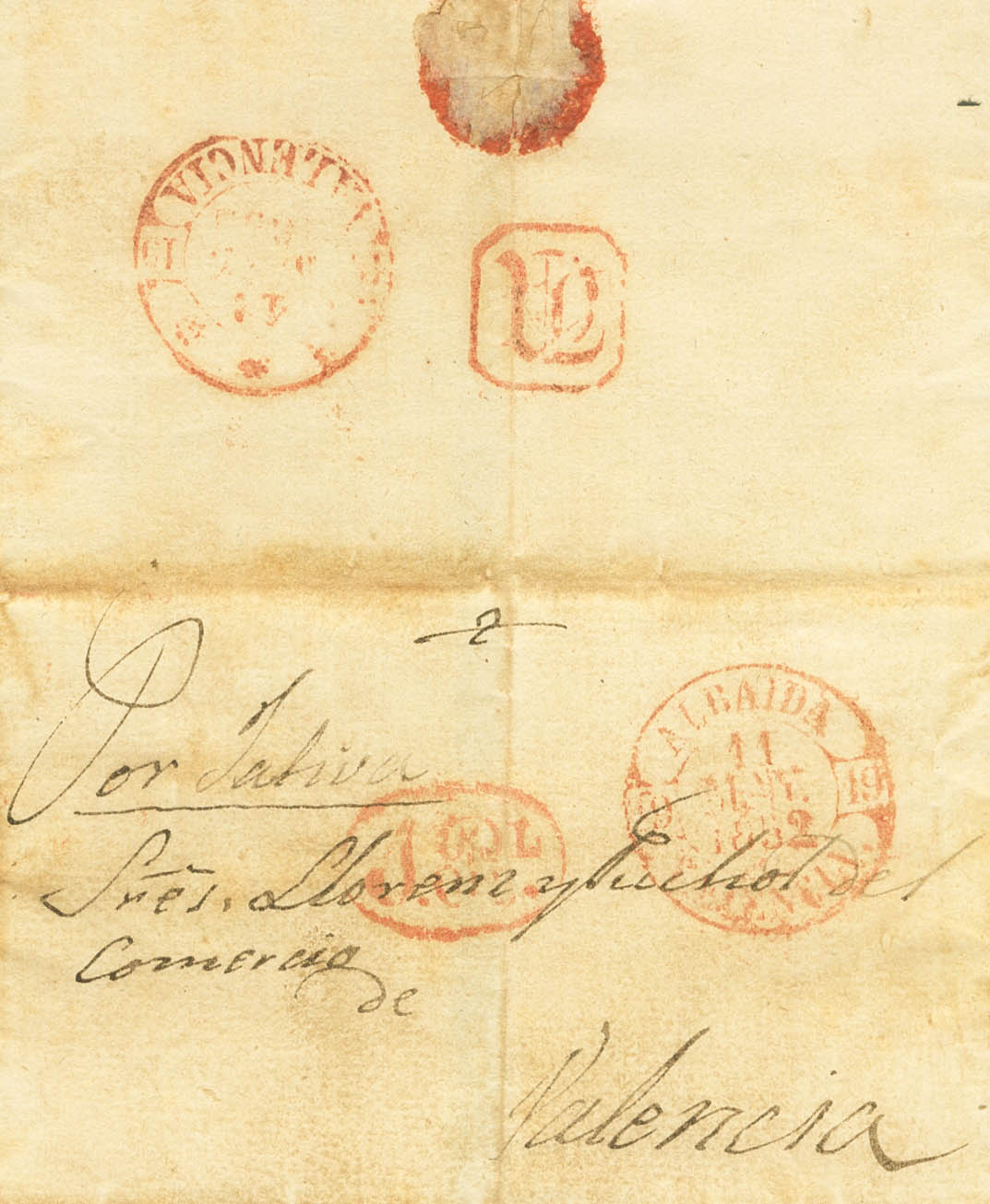 English 1852. ALBAIDA to VALENCIA. Baeza ALBAIDA / VALENCIA, in red and on the back "VA" finish mark, from Valencia (PE39) 2004 edition. MAGNIFICENT AND RARE.