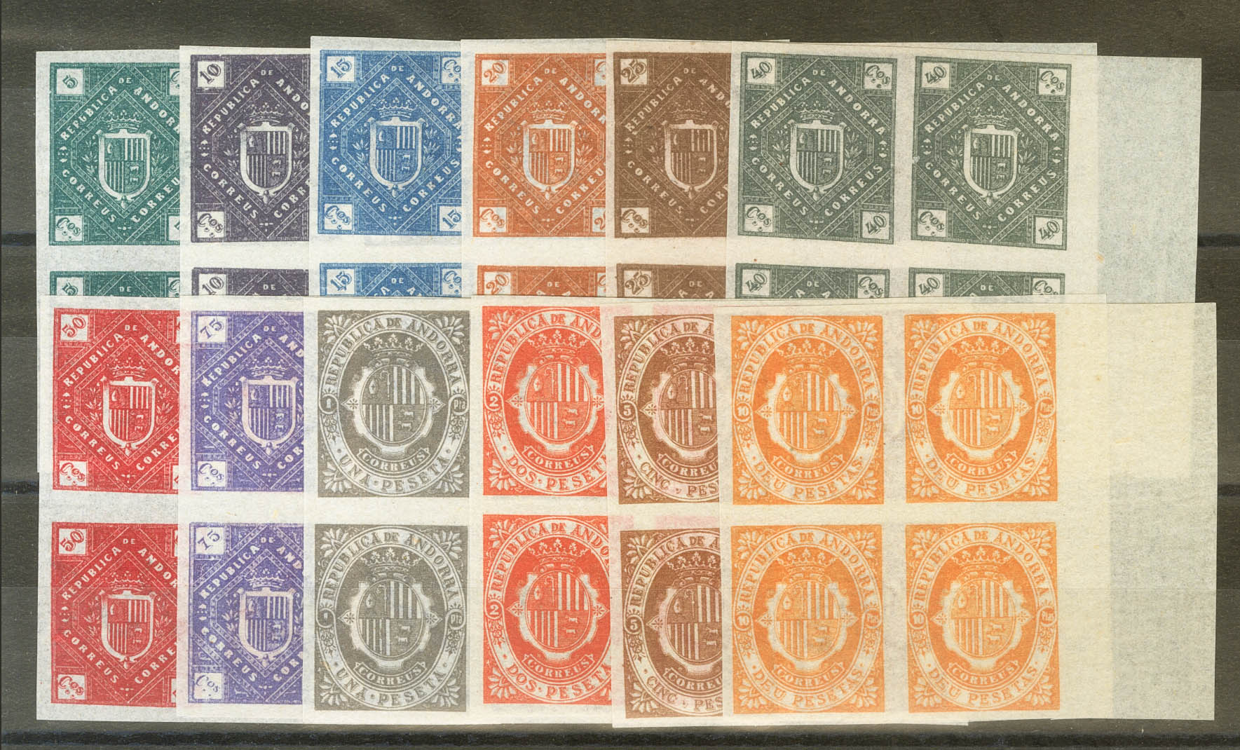 (★) WP1/12(4). 1896. Complete series, edge of sheet, block of four. NOT ISSUED. MAGNIFICENT. Edifil 2023: +280 Euros