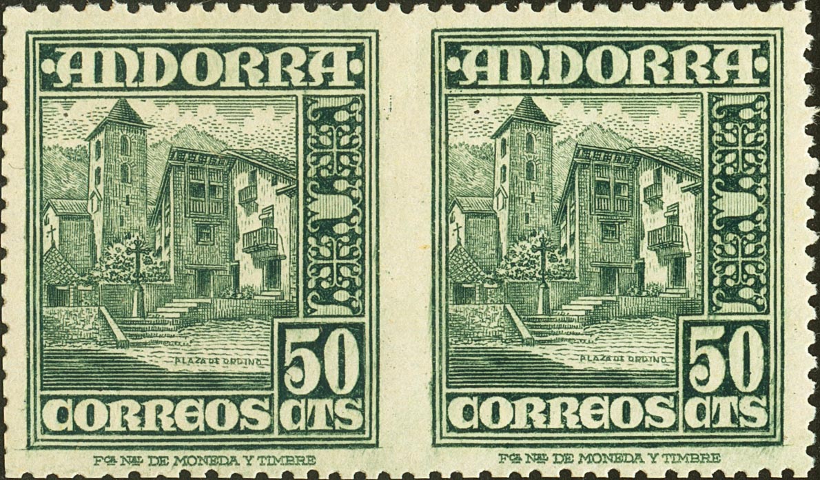 ★ 51sph. 1948. 50 cts green, couple. IMPERFORATE BETWEEN SEALS. MAGNIFICENT AND VERY RARE. Edifil 2018: 600 Euros