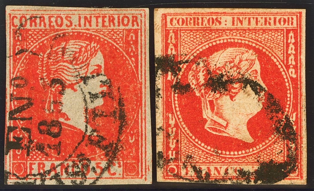 9, 10. 1861. 5 cuartos vermilion and 5 cuartos light red. MAGNIFICENT. Edifil 2023: 125 Euros
