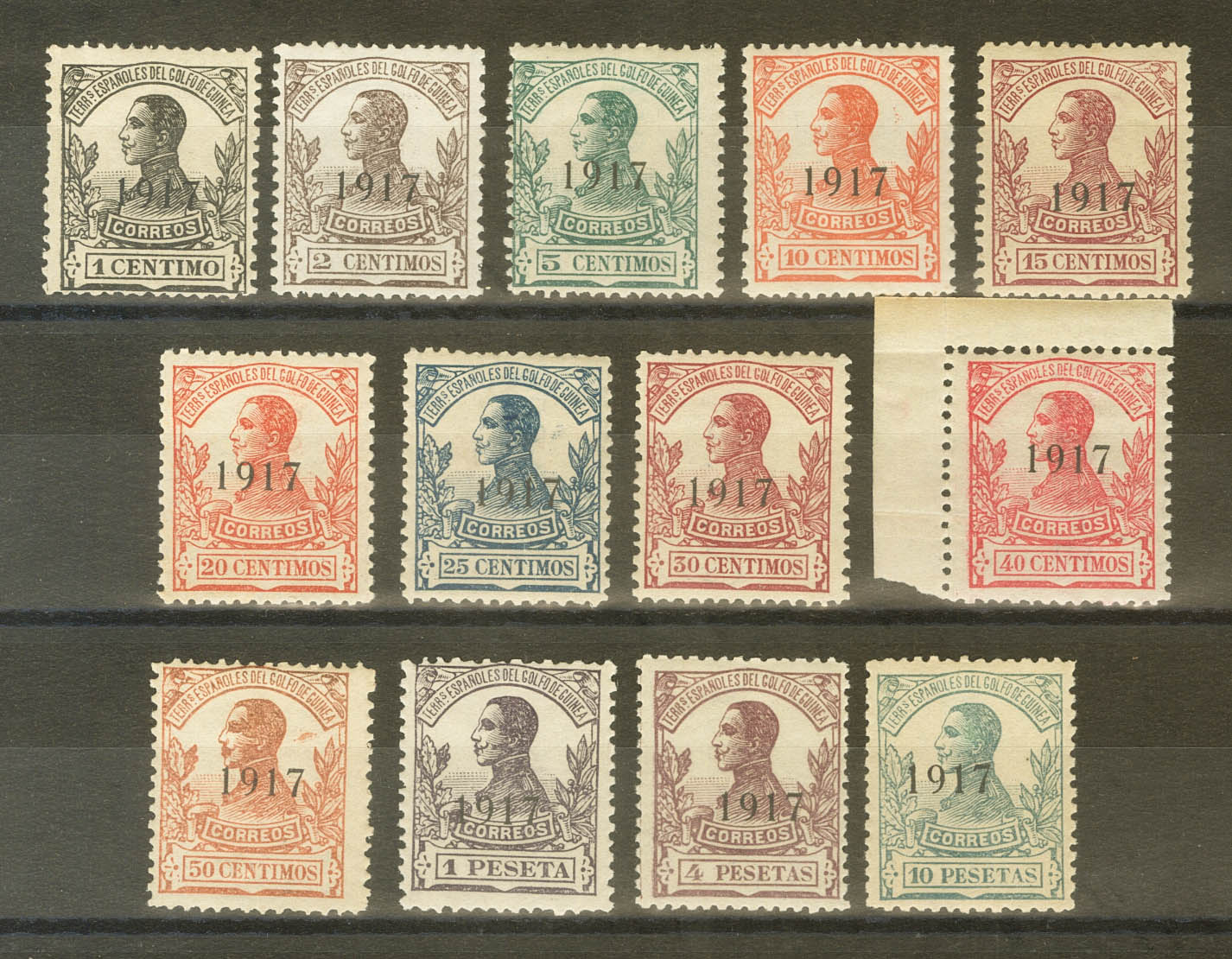 ★★ 111/23. 1917. Complete series. Excellent centers. MAGNIFICENT AND RARE. Cert. CEM (of the key values 1 cts and 2 cts). Edifil 2023: 900 Euros