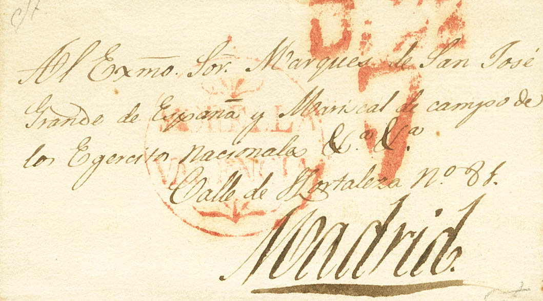 English (1842ca). MORELLA (CASTELLON) to MADRID. MORELLA / VALENCIA (PE4) 2004 edition. MAGNIFICENT AND RARE.