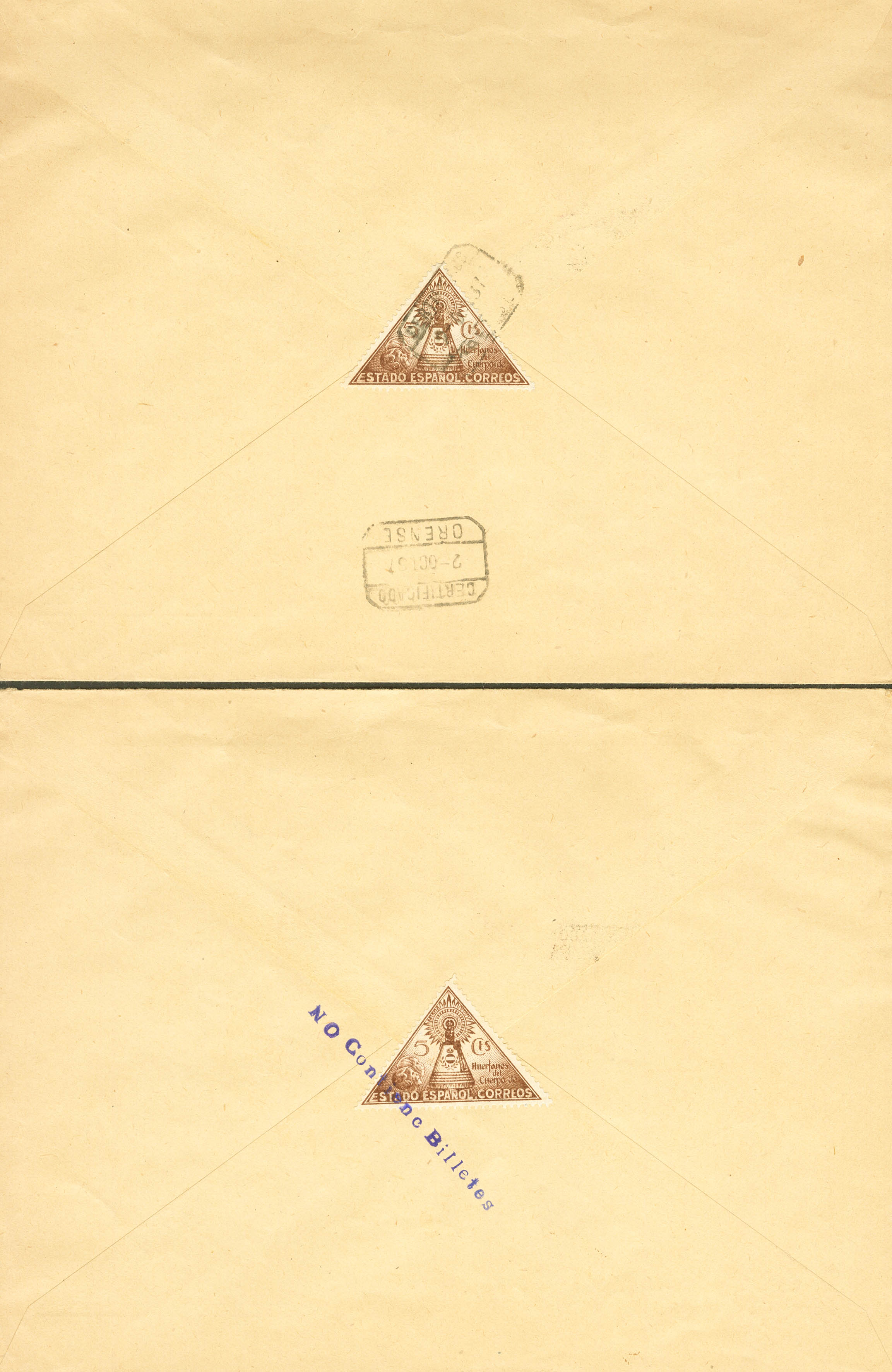 167/68. 1937. Block sheets on two Certified philatelic letters from TETUAN to ORENSE and BRUSSELS (BELGIUM), respectively. MAGNIFICENT.