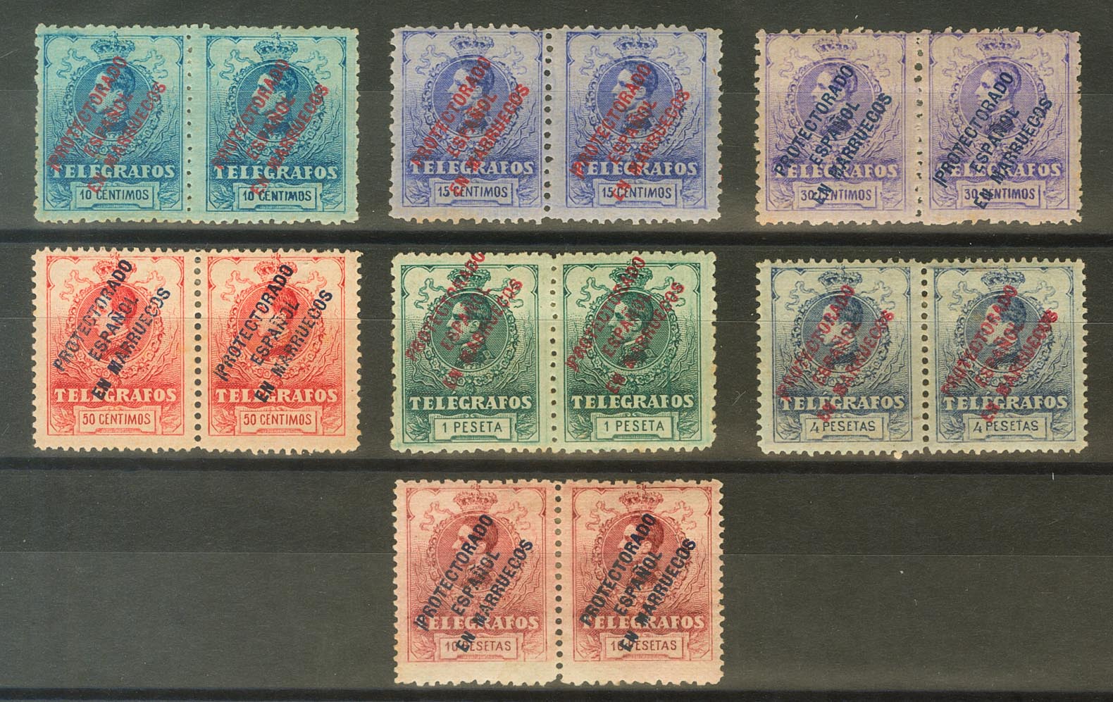 ★ 1/8, 1/8heaA. 1916. Complete series, couple. A stamp variety I PROTECTORATE. MAGNIFICENT AND VERY RARE. Edifil 2018: +1,267 Euros