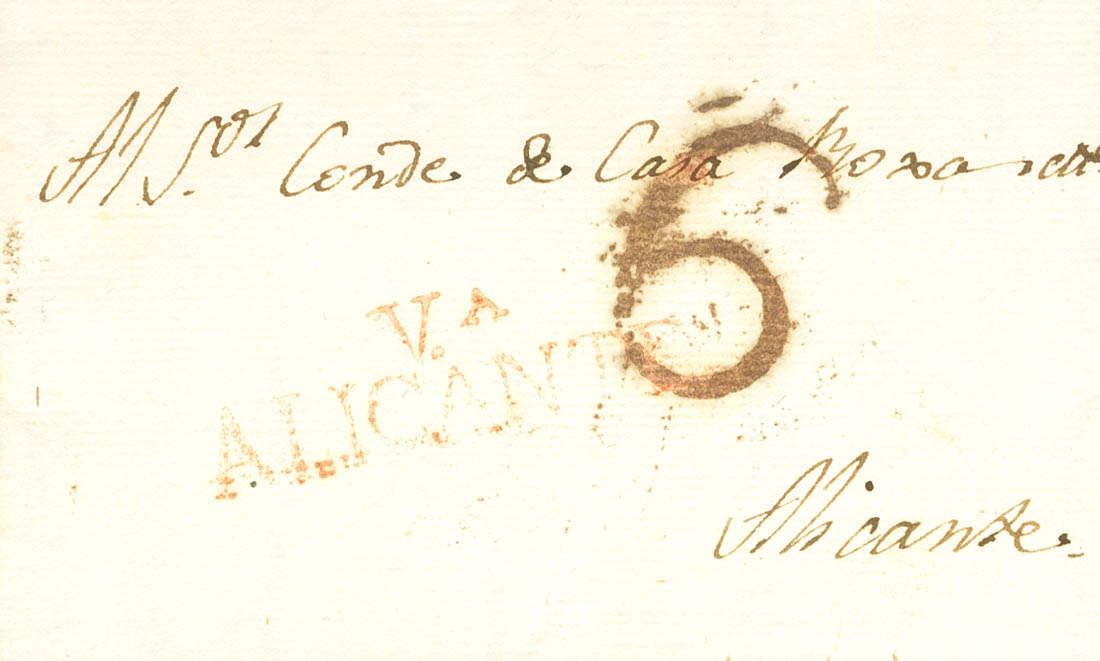 1827. VILLENA to ALICANTE. Brand Vª / ALICANTE (PE2) 2004 edition. MAGNIFICENT.