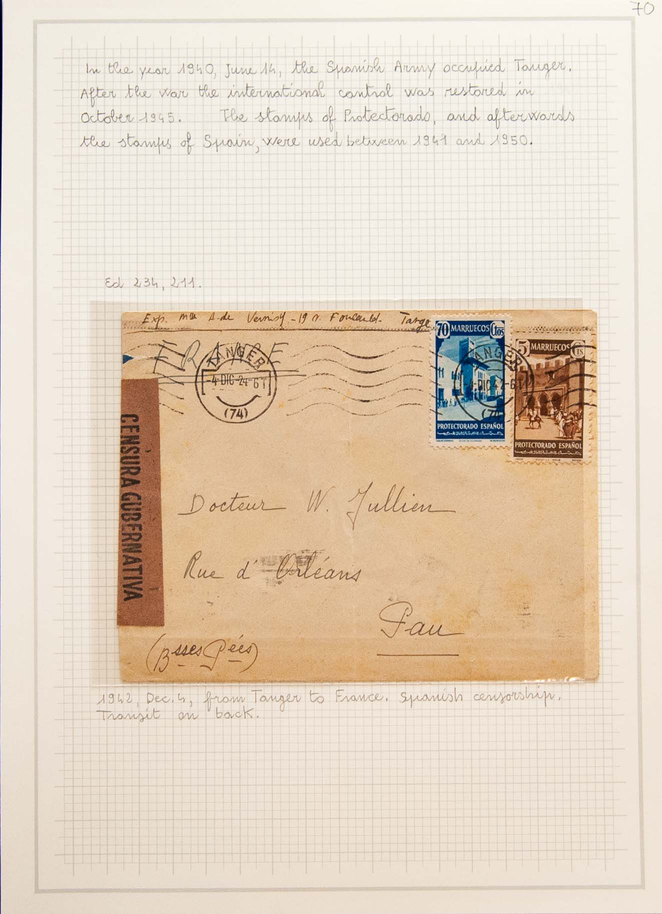 1942. Interesting set of seventeen letters circulated between 1942 and 1953 originating in Tangier and mostly addressed abroad, to destinations such as Sweden, Finland and Hungary, some franked with Spanish stamps. MAGNIFICENT.