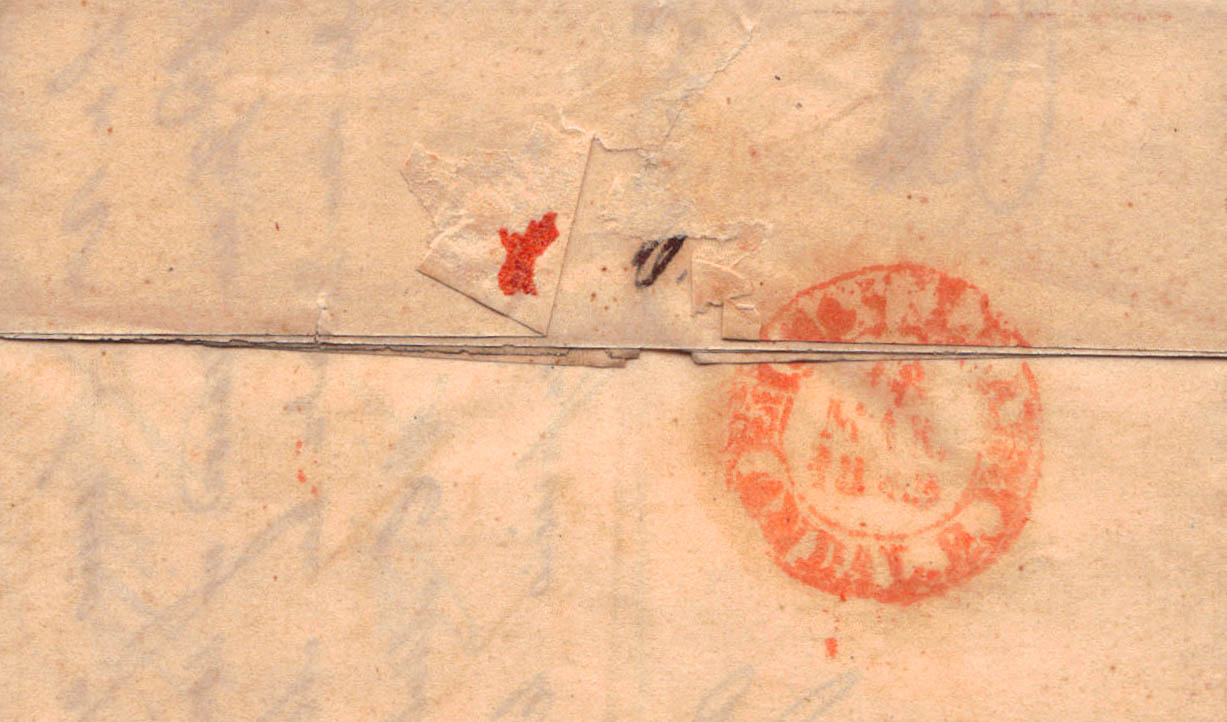 1849. MERIDA to SEVILLE. Baeza MERIDA / ESTREM.B., in red. MAGNIFICENT.