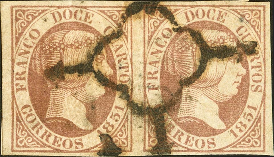 7(2). 1851. 12 lilac cuartos , pair. MAGNIFICENT. Edifil 2020: 430 Euros
