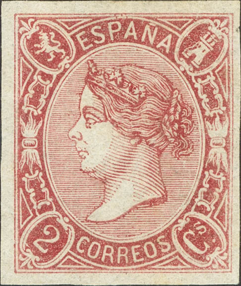 (★) 69. 1865. 2 cuartos carmine. Intense color. MAGNIFICENT. Cert. EXFIME. Edifil 2018: 430 Euros