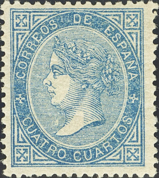★ 88. 1867. 4 blue cuartos . Excellent centering. MAGNIFICENT.