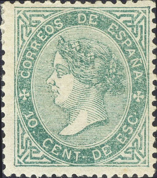 English ★ 91. 1867. 10 cts green. MAGNIFICENT. Edifil 2020: 440 Euros