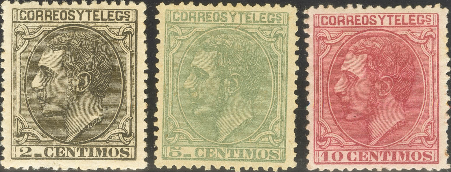 ★ 200, 201, 202. 1879. 2 cts black, 5 cts green and 10 cts pink. Excellent centers. MAGNIFICENT.