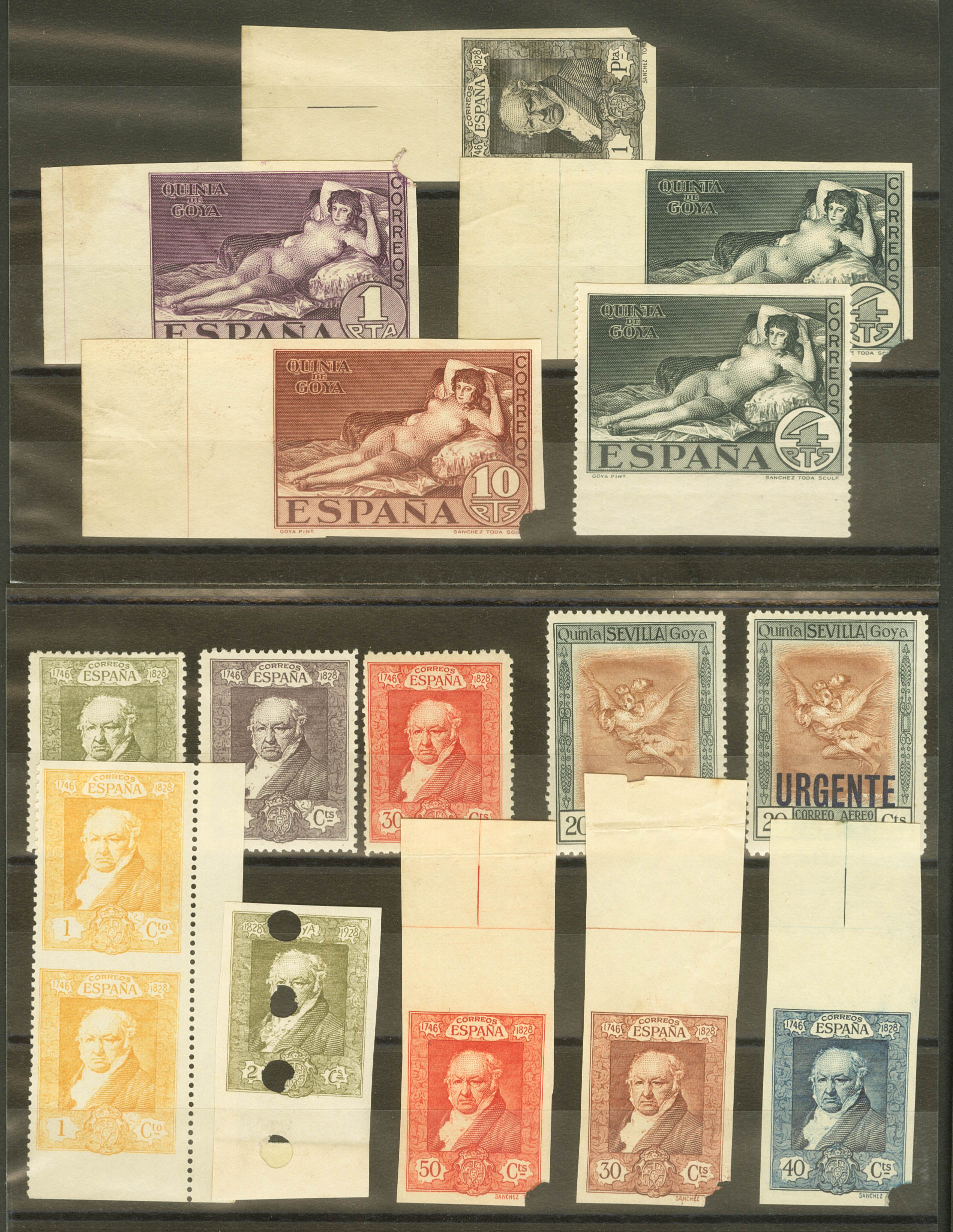 ★★/★1930. Interesting set of varieties from Goya's 1930 issues, including perforations, color changes, indented and overburden varieties. HIGH CATALOG VALUE. TO EXAMINE.