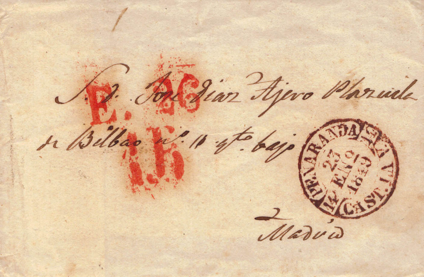 1849. PEÑARANDA DE BRACAMONTE to MADRID. Baeza PEÑARANDA / CAST.LA V., in brown. MAGNIFICENT.