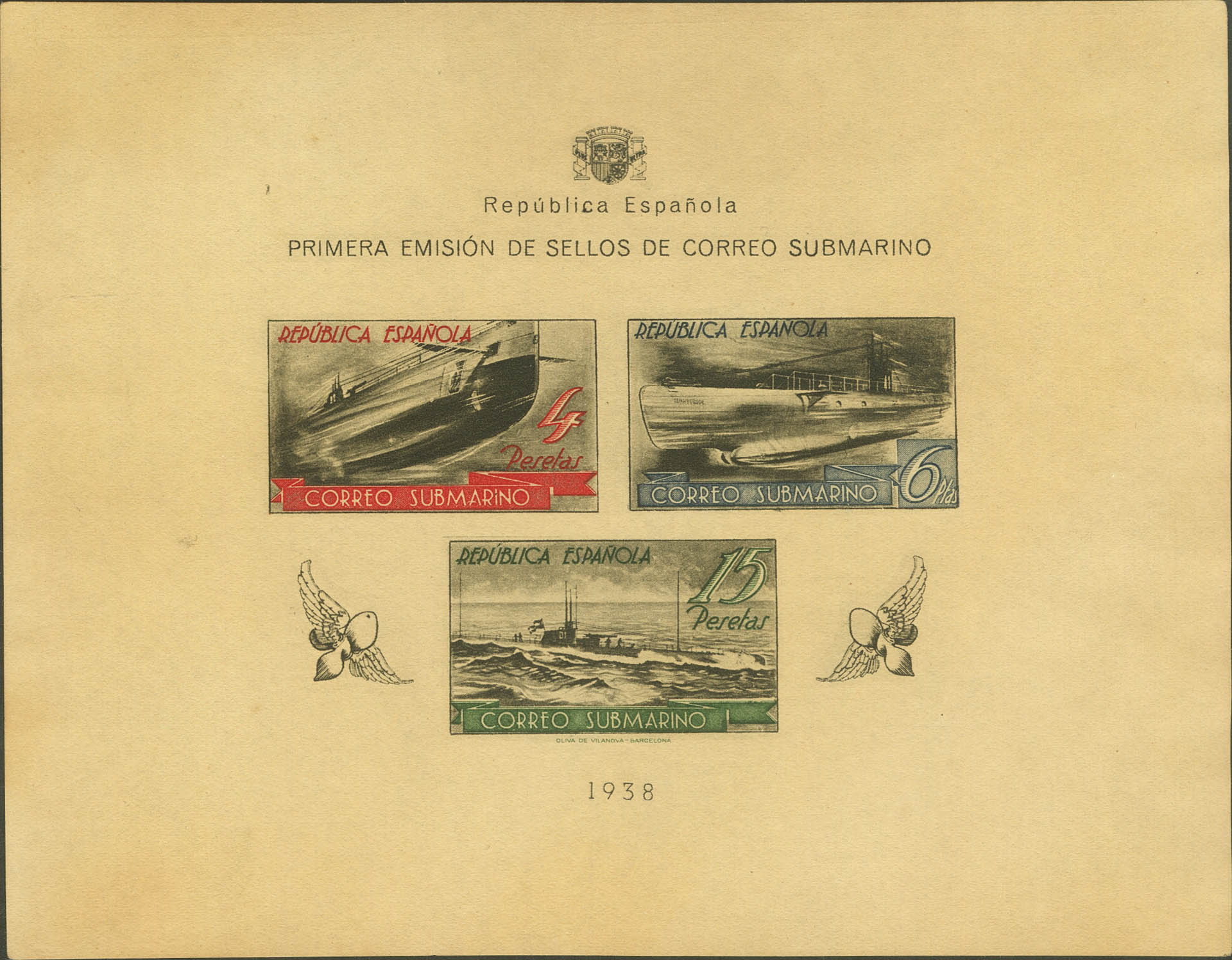 (★) 781sa. 1938. Block sheet. IMPERFORATE, with ornaments and Nº000000. MAGNIFICENT AND RARE. Cert. EMF. Edifil 2020: 4,300 Euros