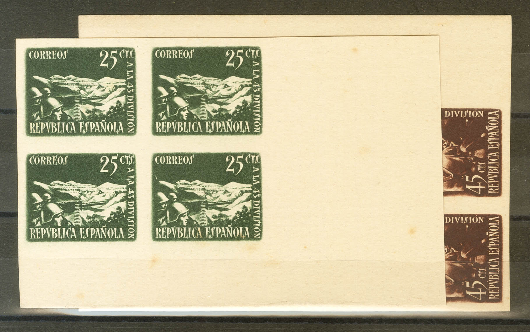(★) 787/88pcs(4). 1938. Complete series, block of four (usual conservation). CARDBOARD PAPER and IMPERFORATED. MAGNIFICENT. Edifil 2020: +568 Euros