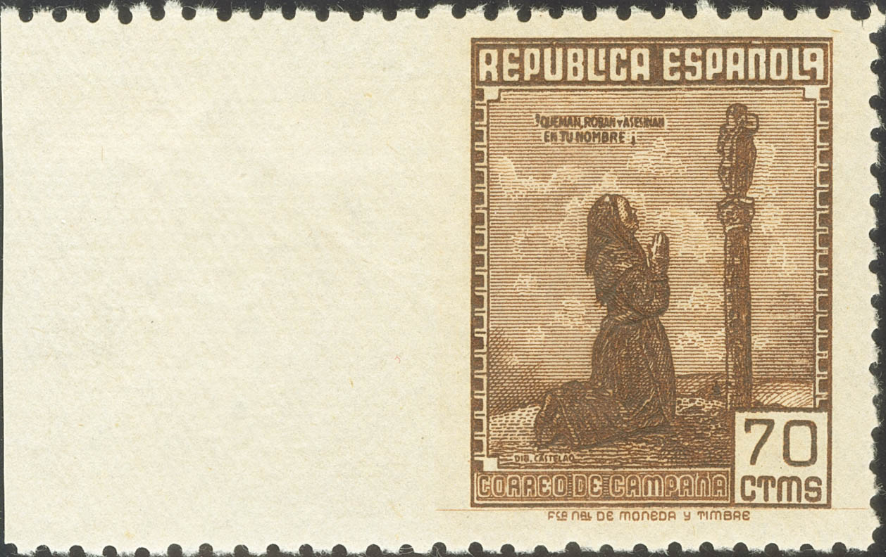 English ★ NE52smi. 1939. 70 cts chestnut NOT ISSUED. IMPROPER VARIETY ON THE LEFT MARGIN. MAGNIFICENT. Edifil 2015: 110 Euros