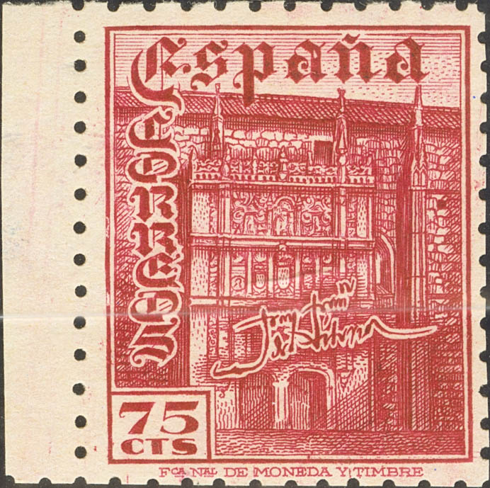 English ★★ 1003ccs. 1946. 75 cts carmine, leaf edge. COLOR CHANGE. MAGNIFICENT AND RARE. Edifil 2015: +200 Euros
