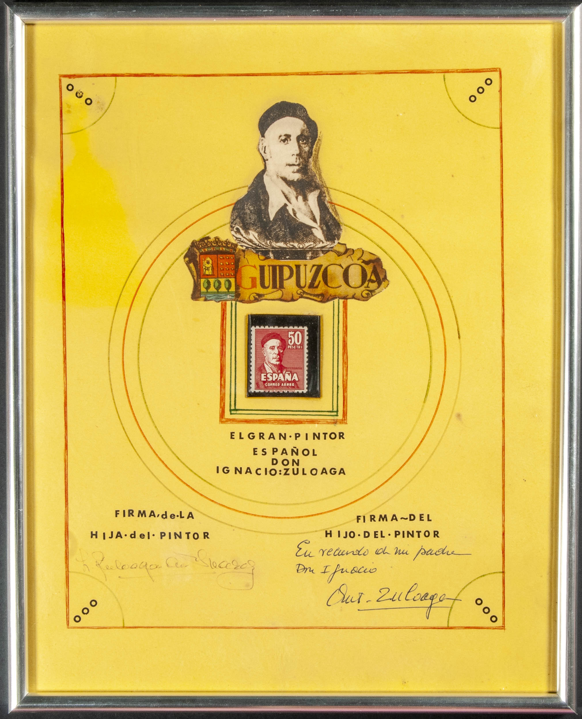 English ★★ 1016. 1947. 50 carmine pts (well centered and in perfect condition). Mounted in a box with the signature of the sons of Ignacio Zuloaga. MAGNIFICENT AND UNUSUAL.