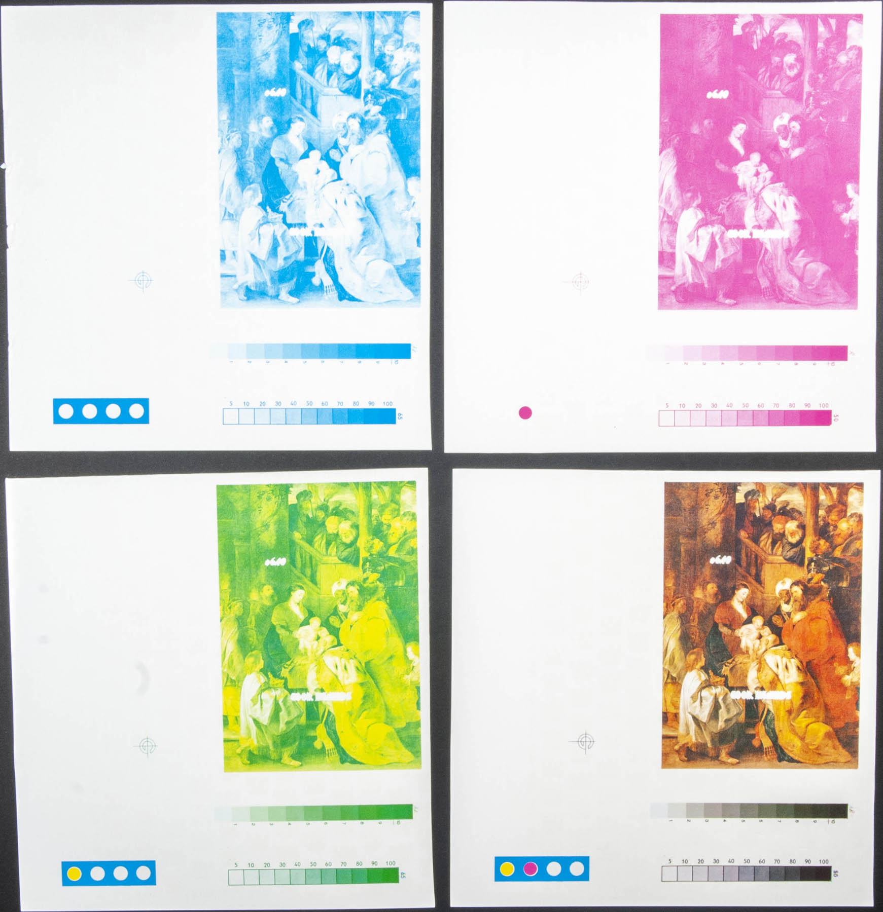 ★★Yvert . 1989. Christmas, Rubens. Souvenir sheet. Group of progressive plate proof of the sheet. (Michel: B193)