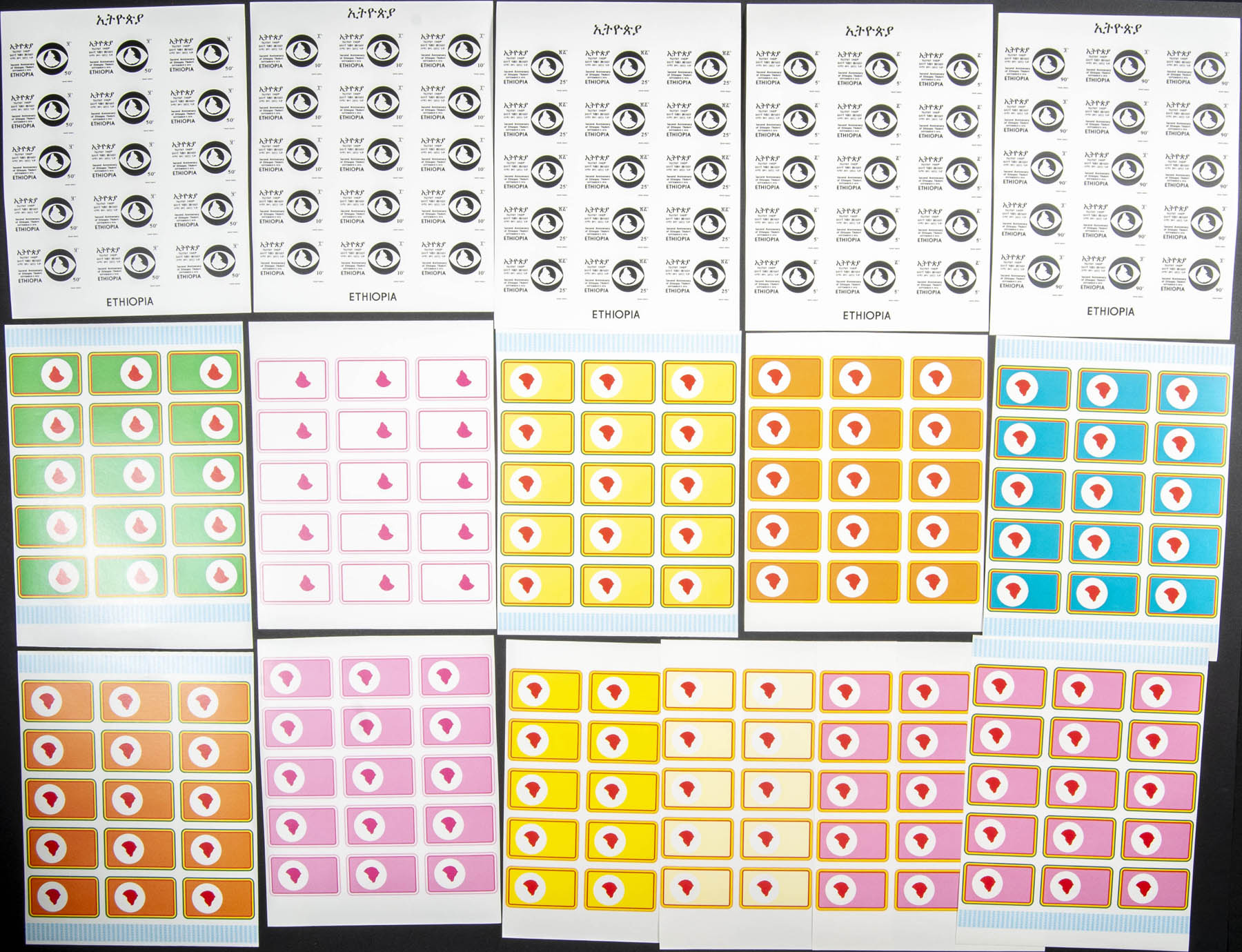 ★★Yvert 789/93. 1976. Tikdem 2nd Anniversary. Group of progressive plate proofs of the set.