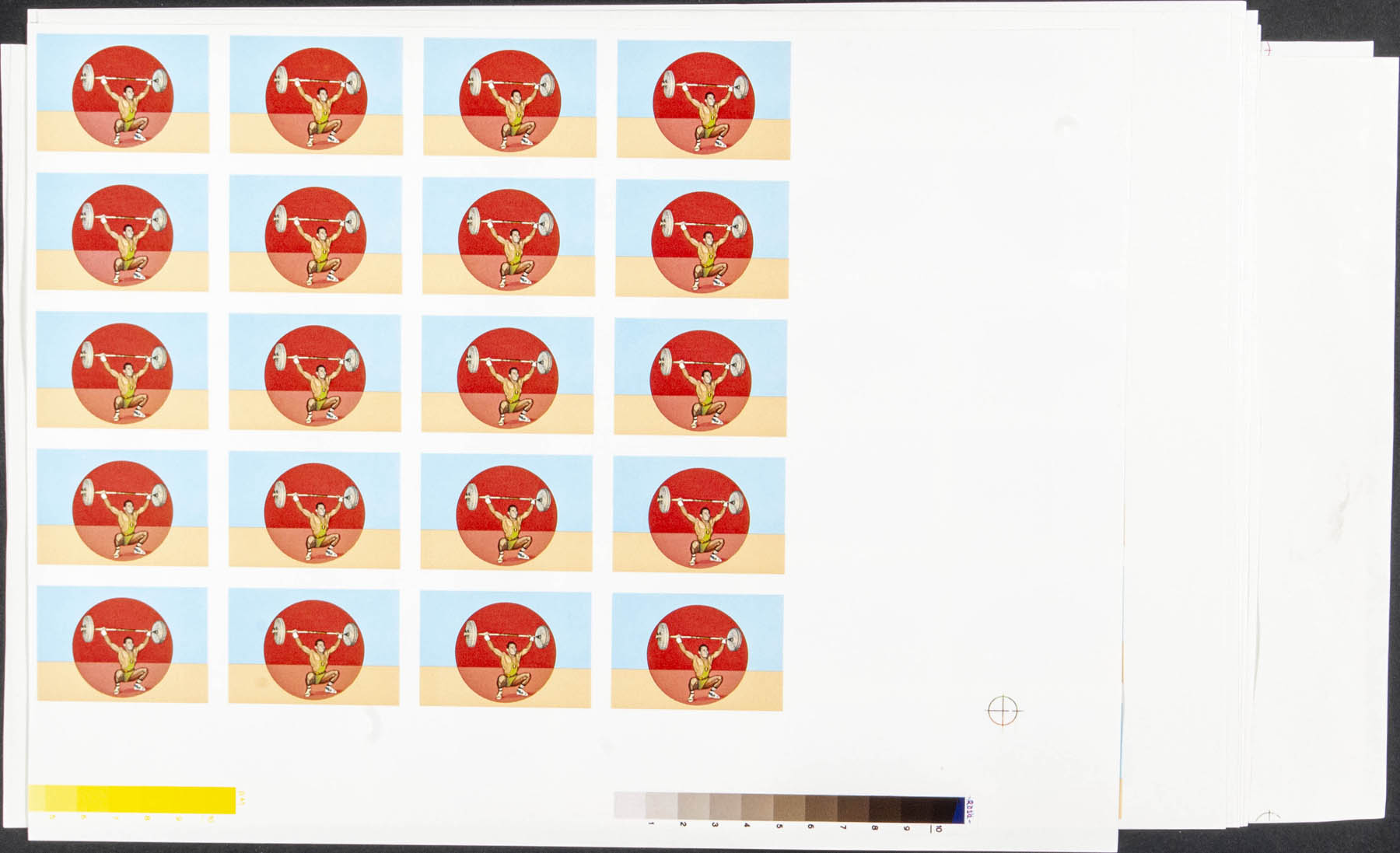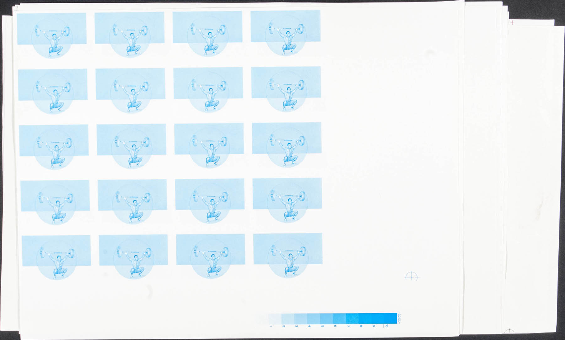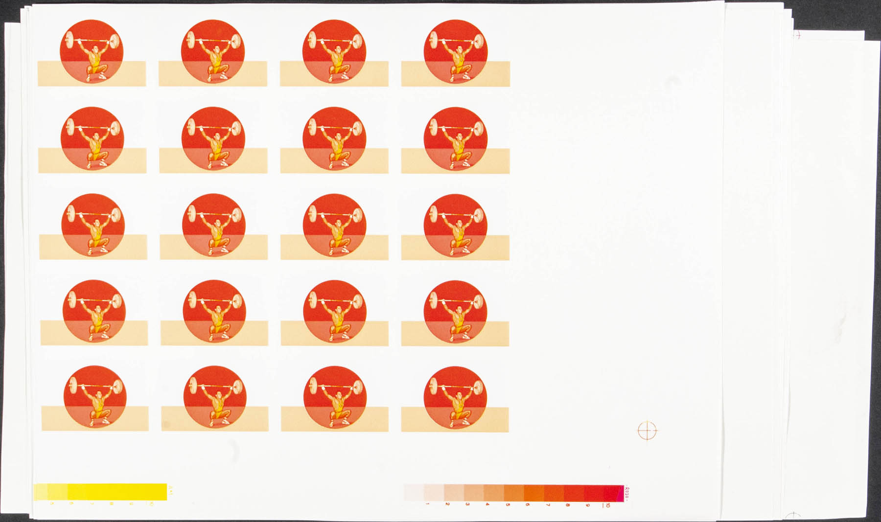 ★★Yvert 823/24. 1977. Weight lifting championship. Group of progressive plate proofs of the set.