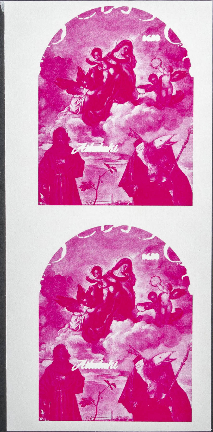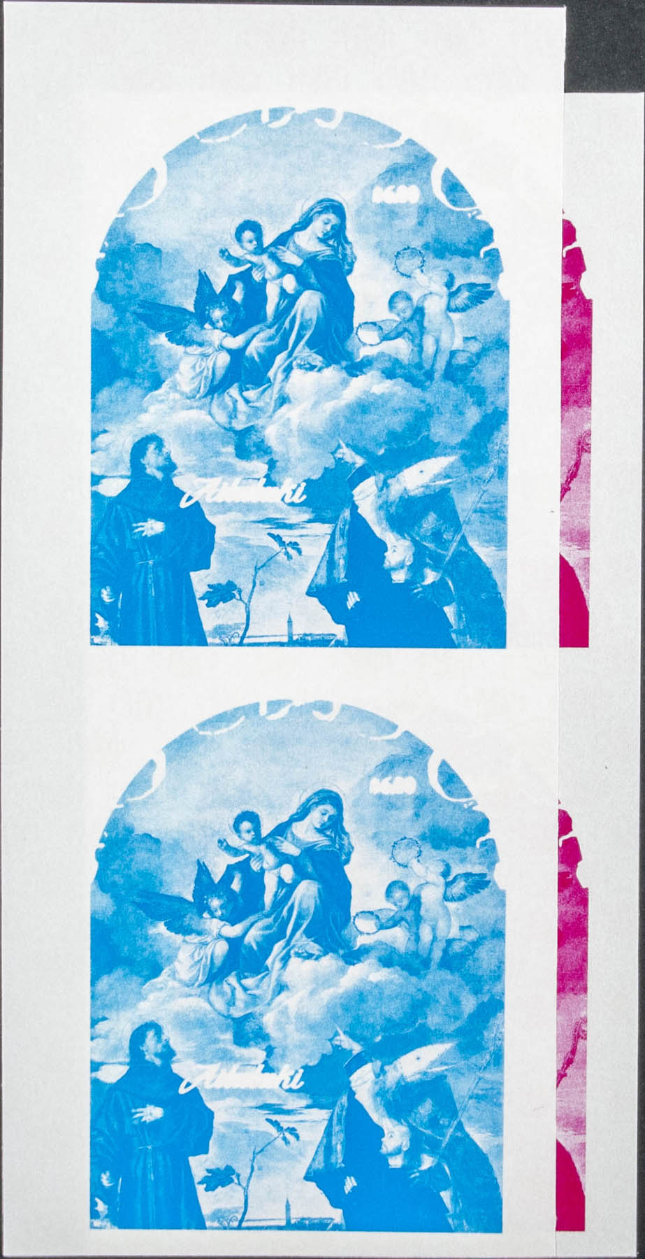 ★★Yvert B74. 1989. Christmas, Titian painting. Souvenir sheet. Group of progressive plate proof of the sheet.