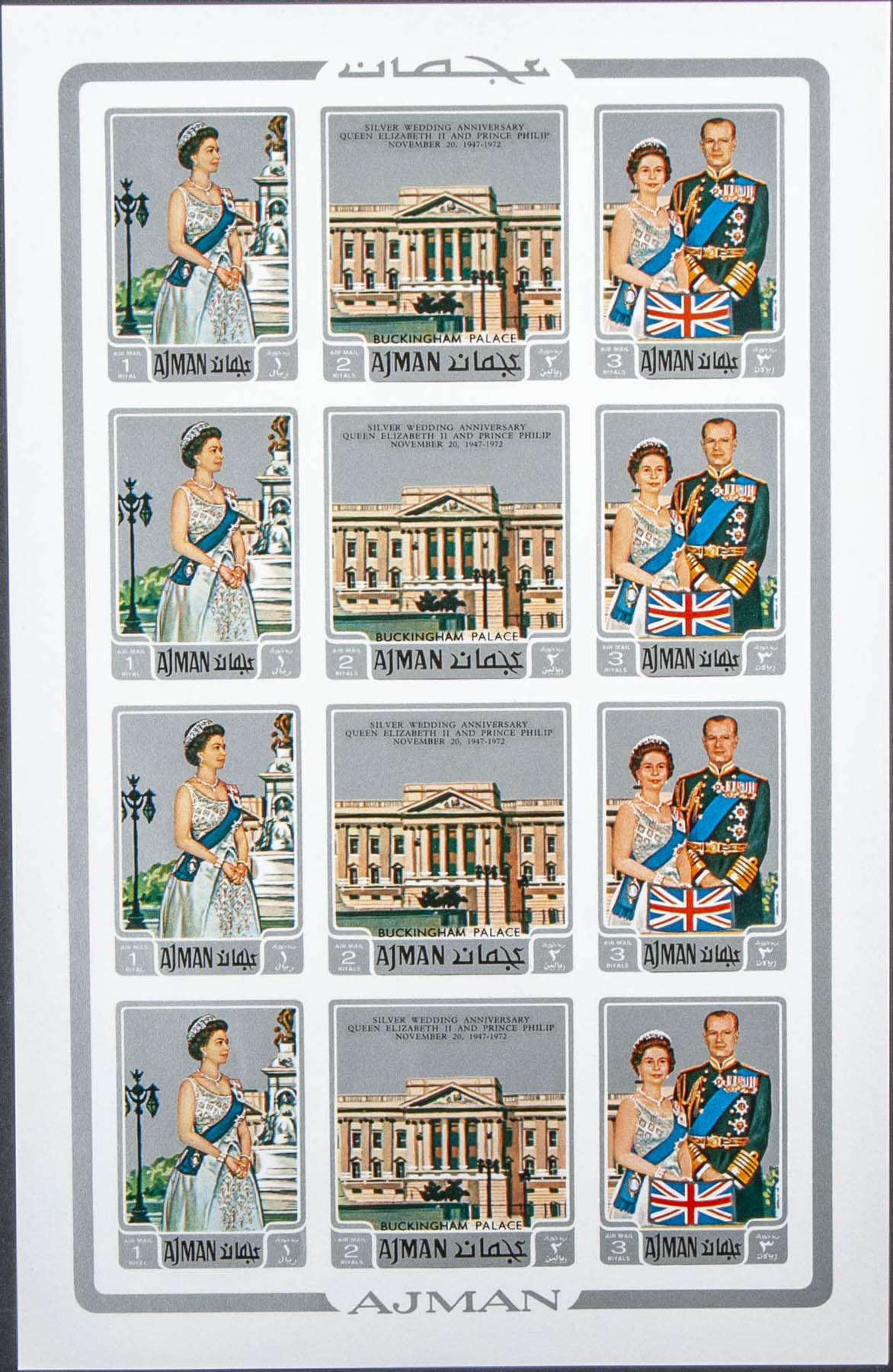 ★★ . 1971. Elizabeth II silver wedding. Group of complete IMPERFORATED set. (Michel: 1010/12)