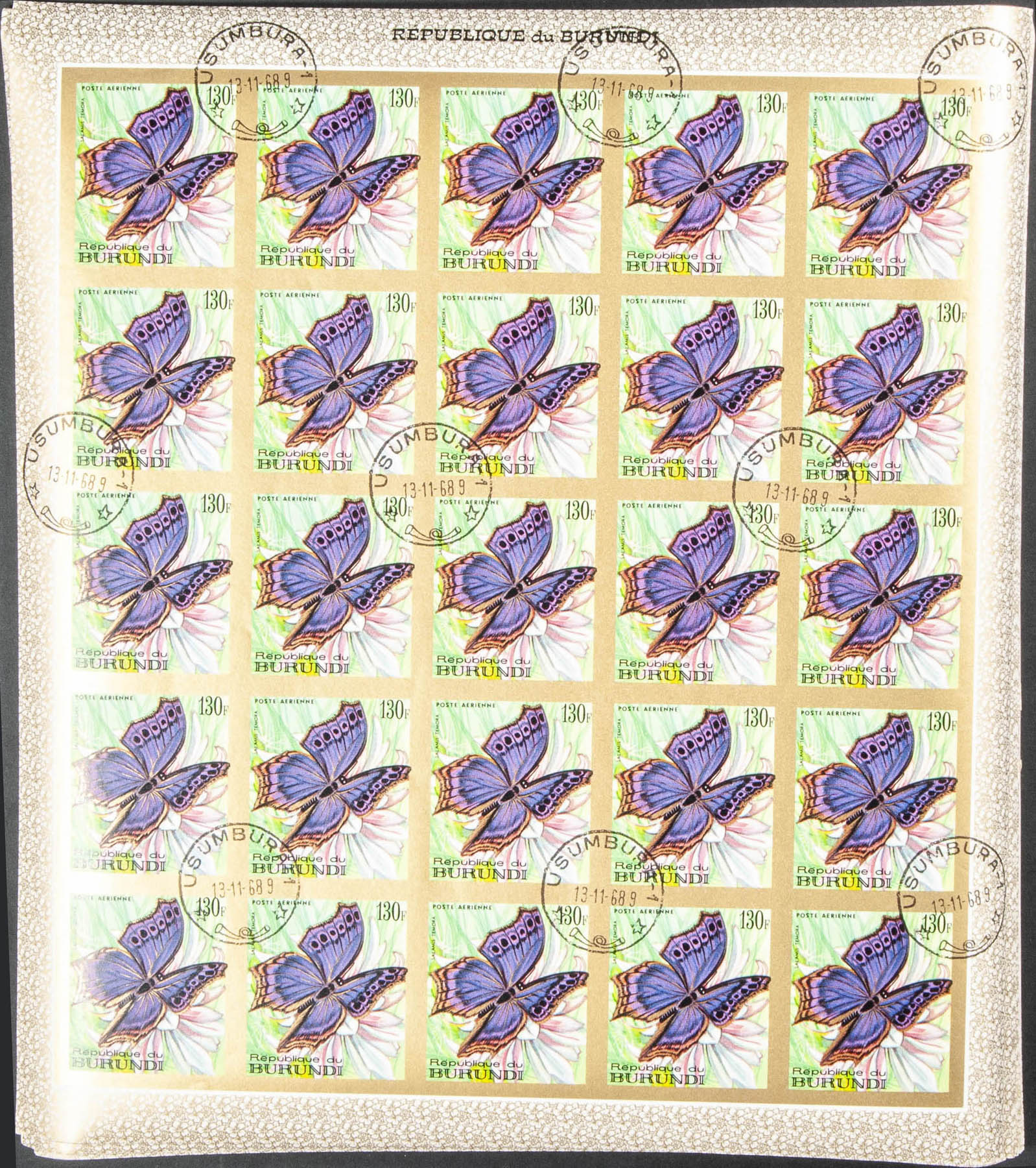 Yvert A82/90. 1968. Butterflies. Group of complete IMPERFORATED set. Cancelled to order.