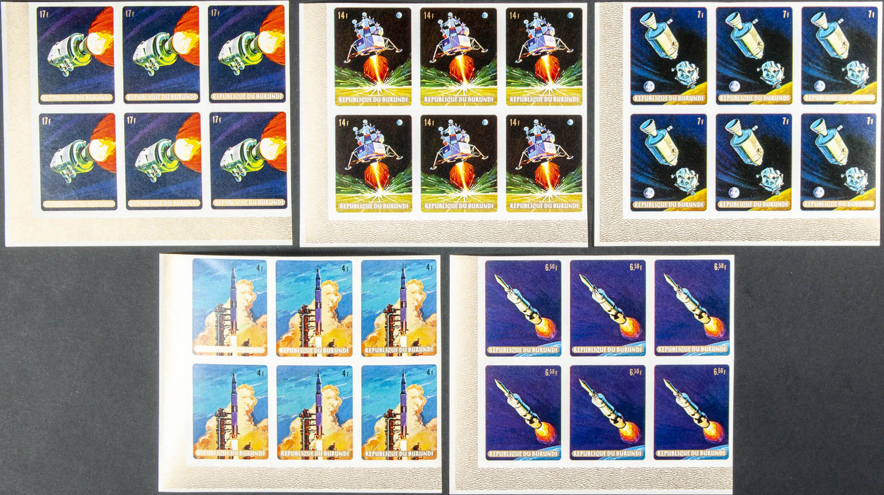 ★★Yvert 337/41. 1969. Apollo 11. Group of complete IMPERFORATED set.