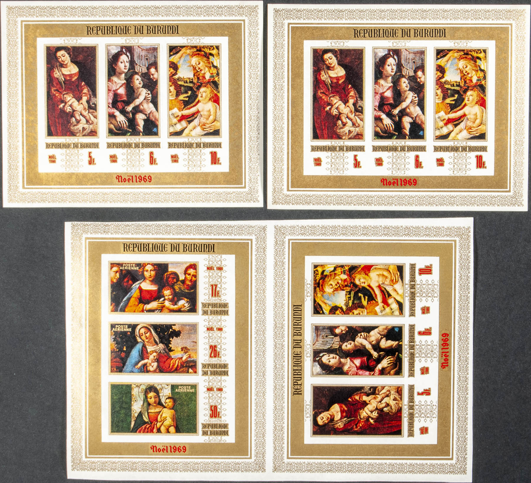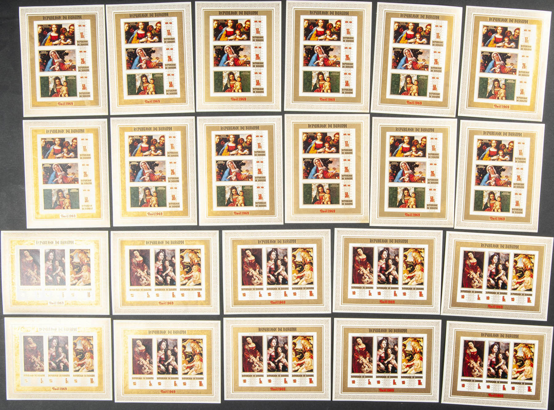 ★★Yvert B34/35. 1969. Christmas. Souvenir sheet. Group of IMPERFORATED sheets.