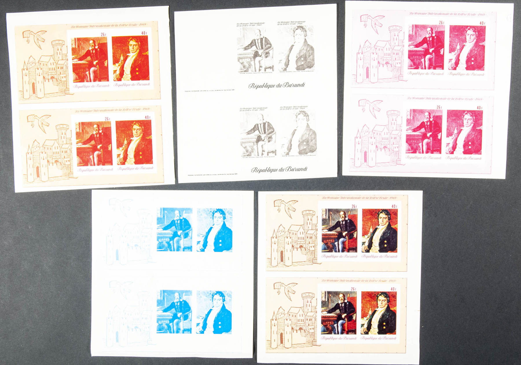 ★★Yvert B36. 1969. Letter writing week. Souvenir sheet. Progressive plate proof of the sheet.
