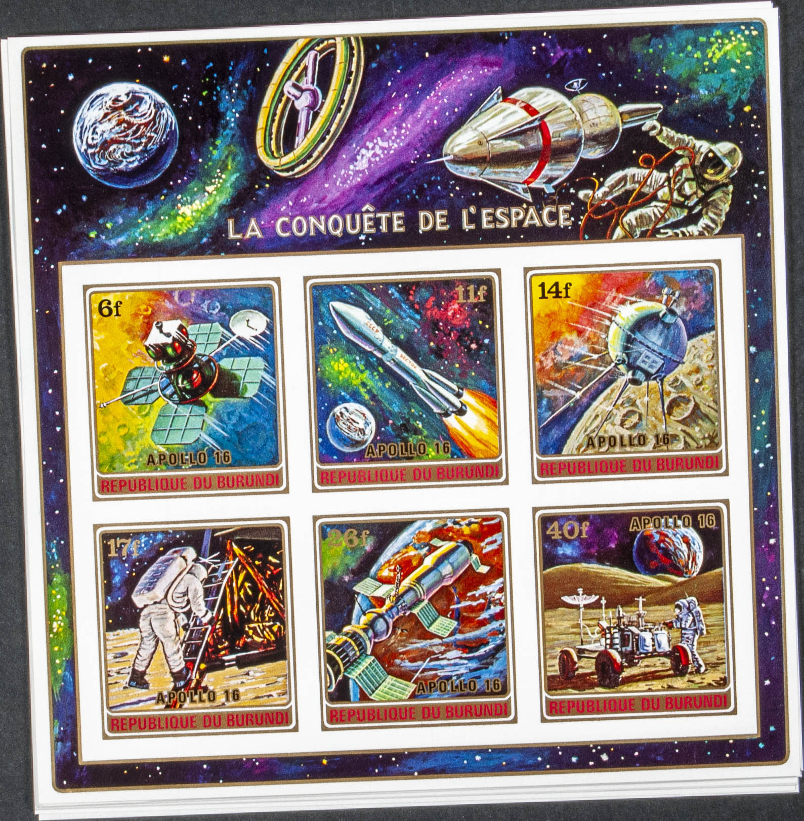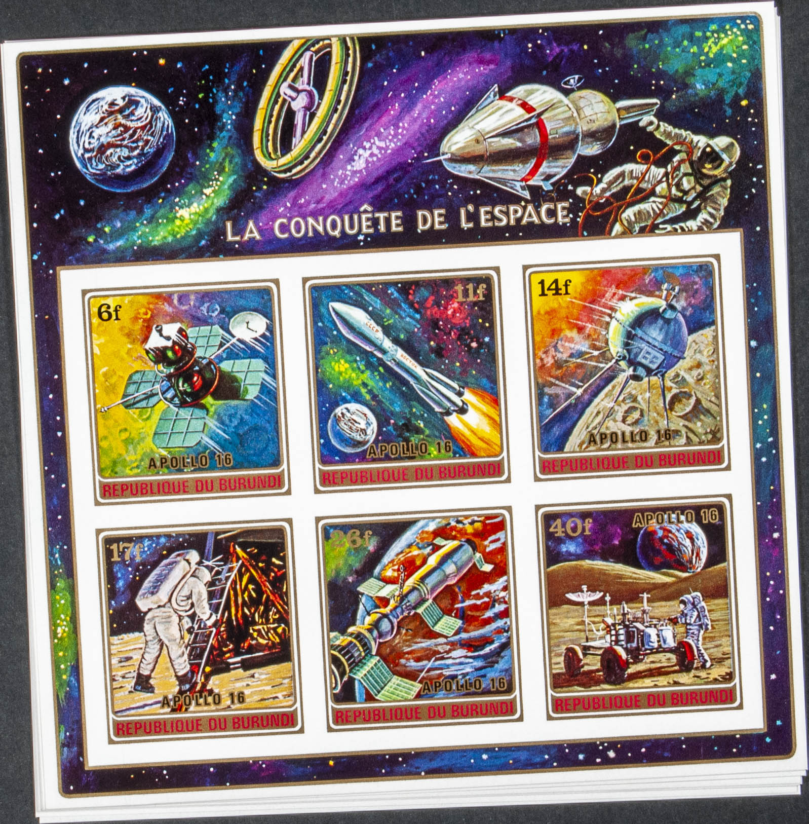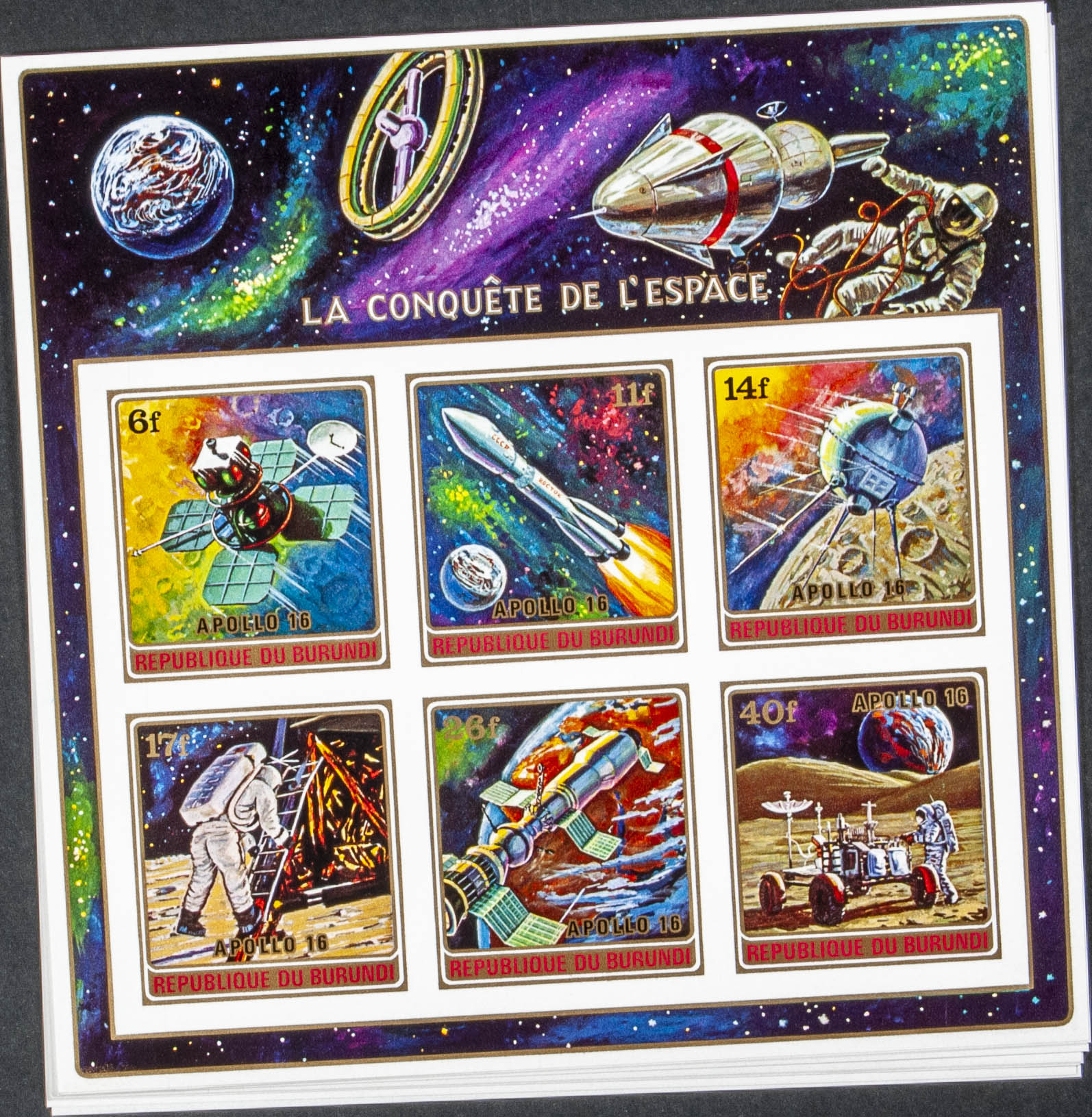 ★★Yvert B58. 1972. Space exploration-Apolo 16. Souvenir sheet. Group of IMPERFORATED sheets.