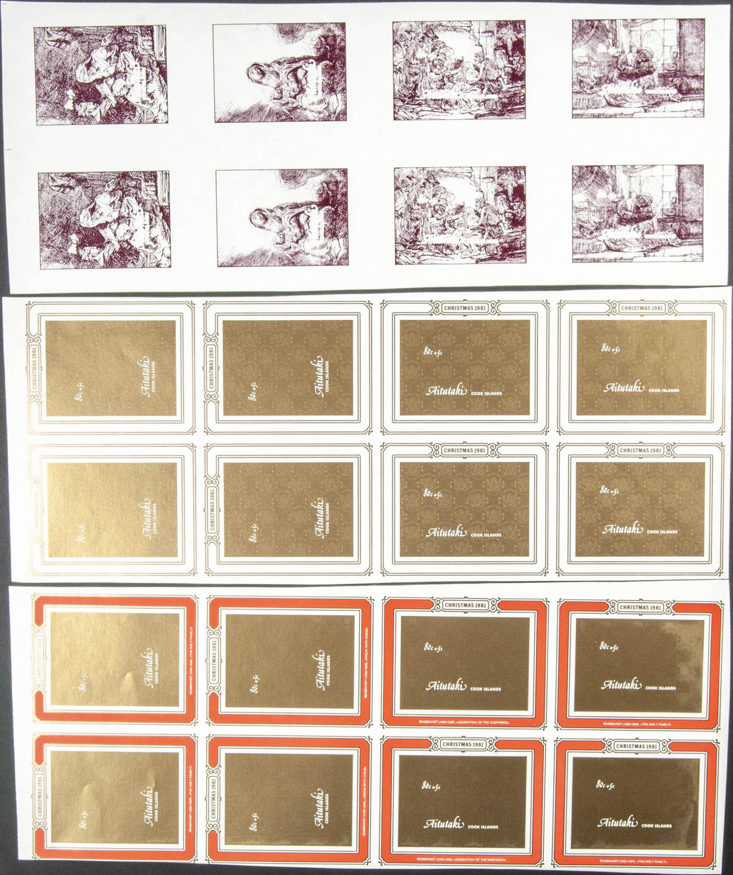 ★★Yvert B33/36. 1981. Christmas. Souvenir sheet. Group of progressive plate proofs of the sheet.
