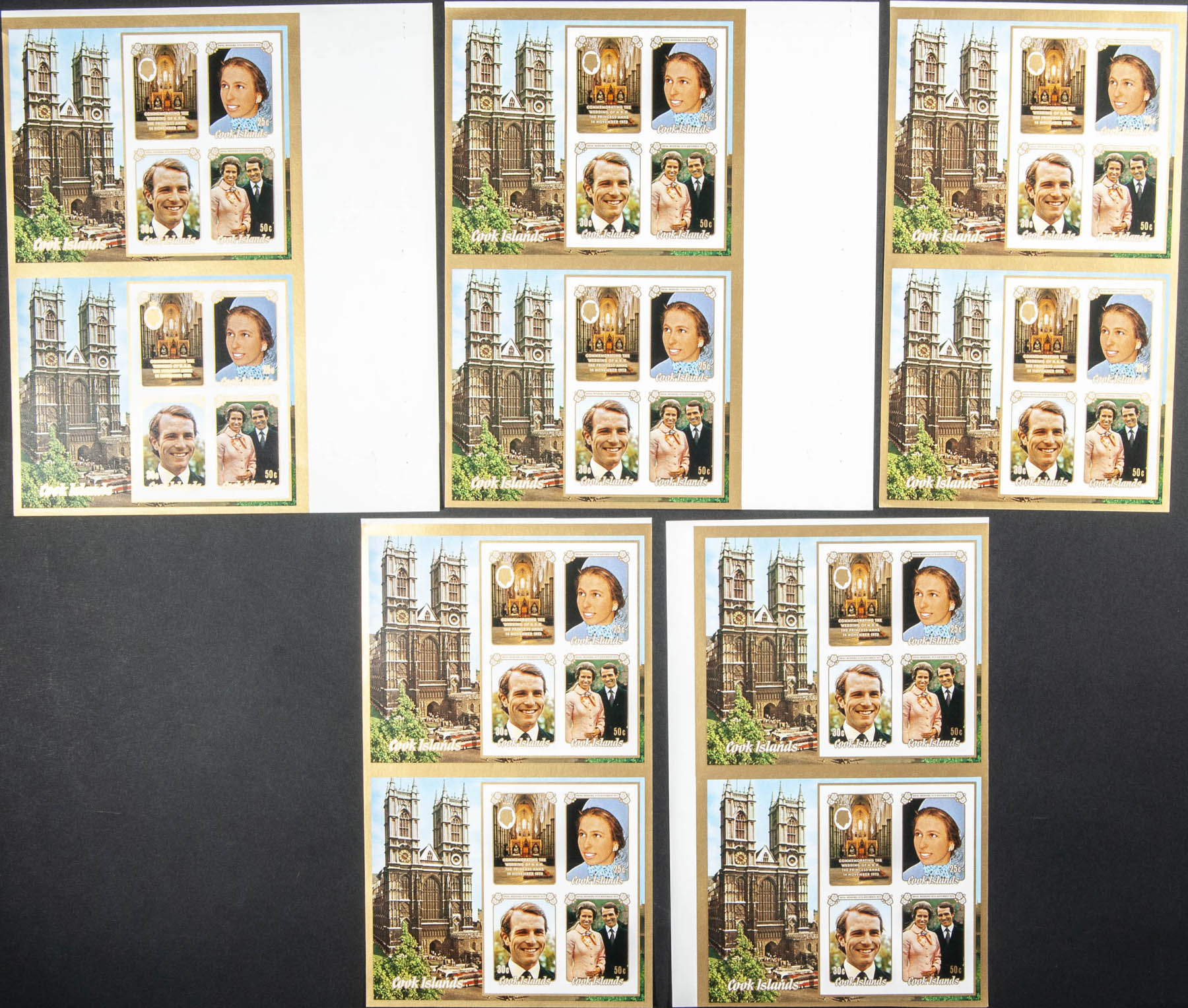 ★★Yvert B25. 1973. Anne and Mark wedding. Souvenir sheet. Group of IMPERFORATED sheets.