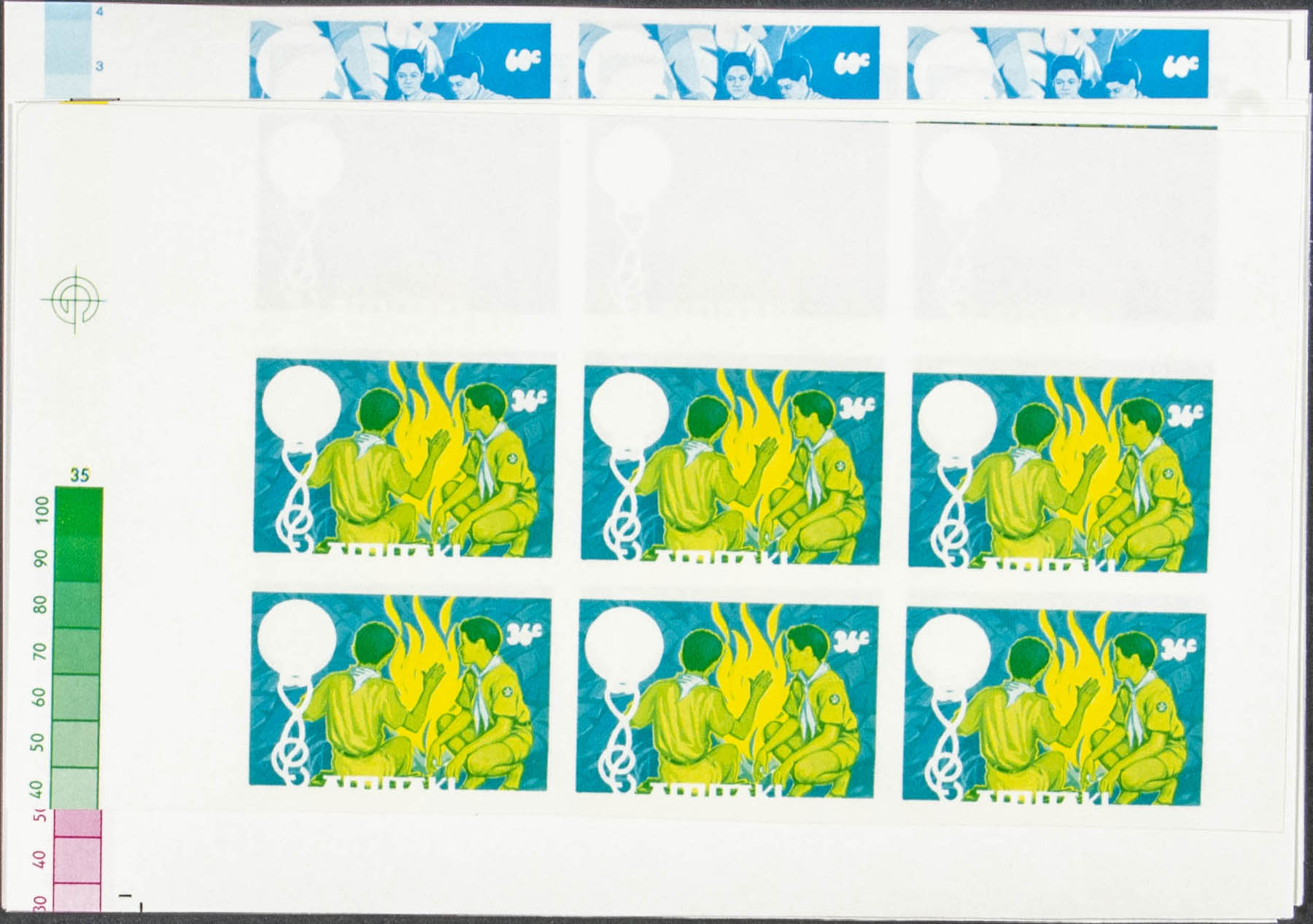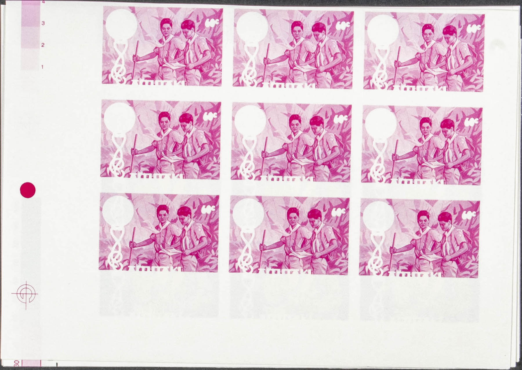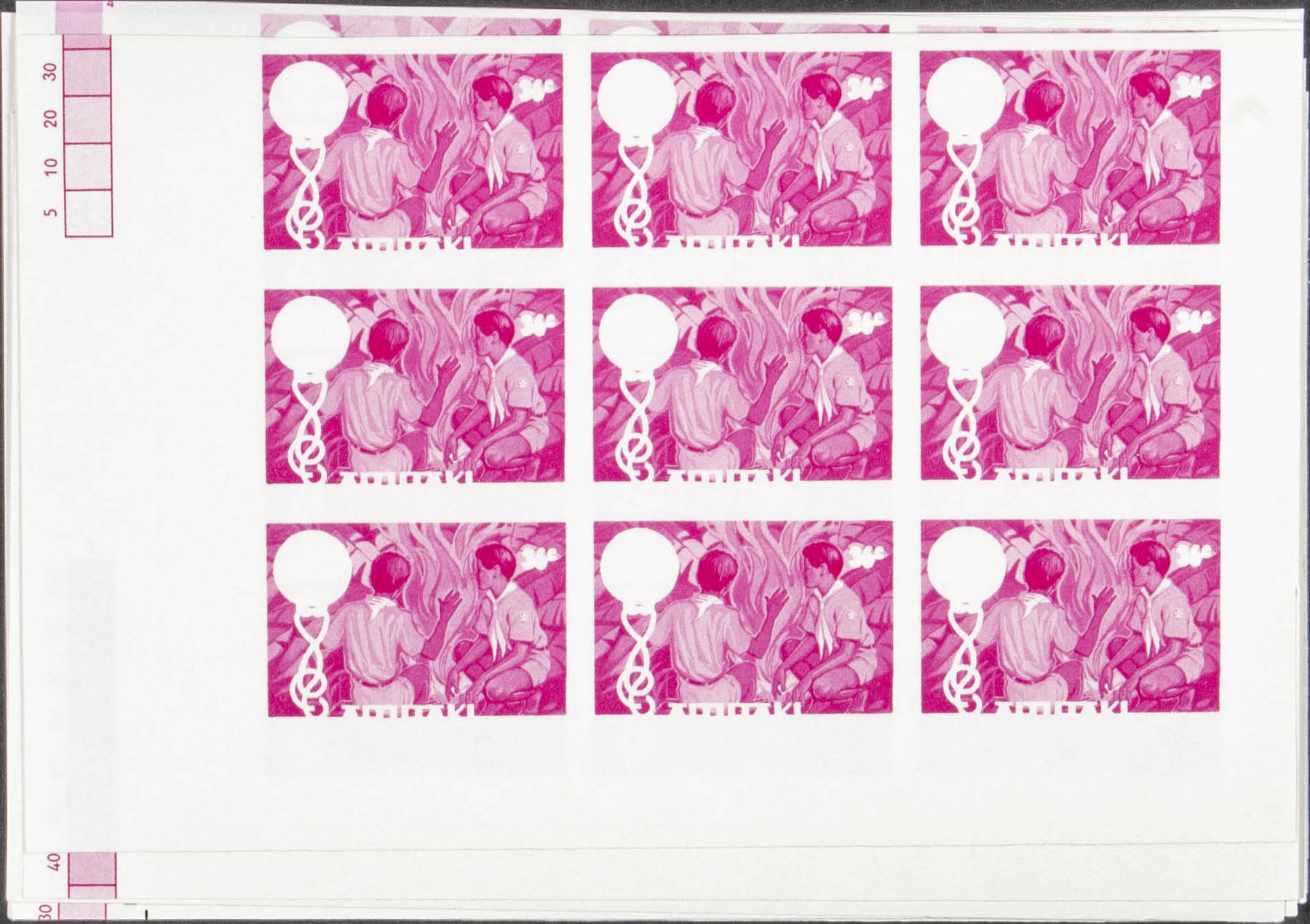 ★★Yvert 345/47. 1983. 75 years Scouting. Group of progressive plate proofs of the set.