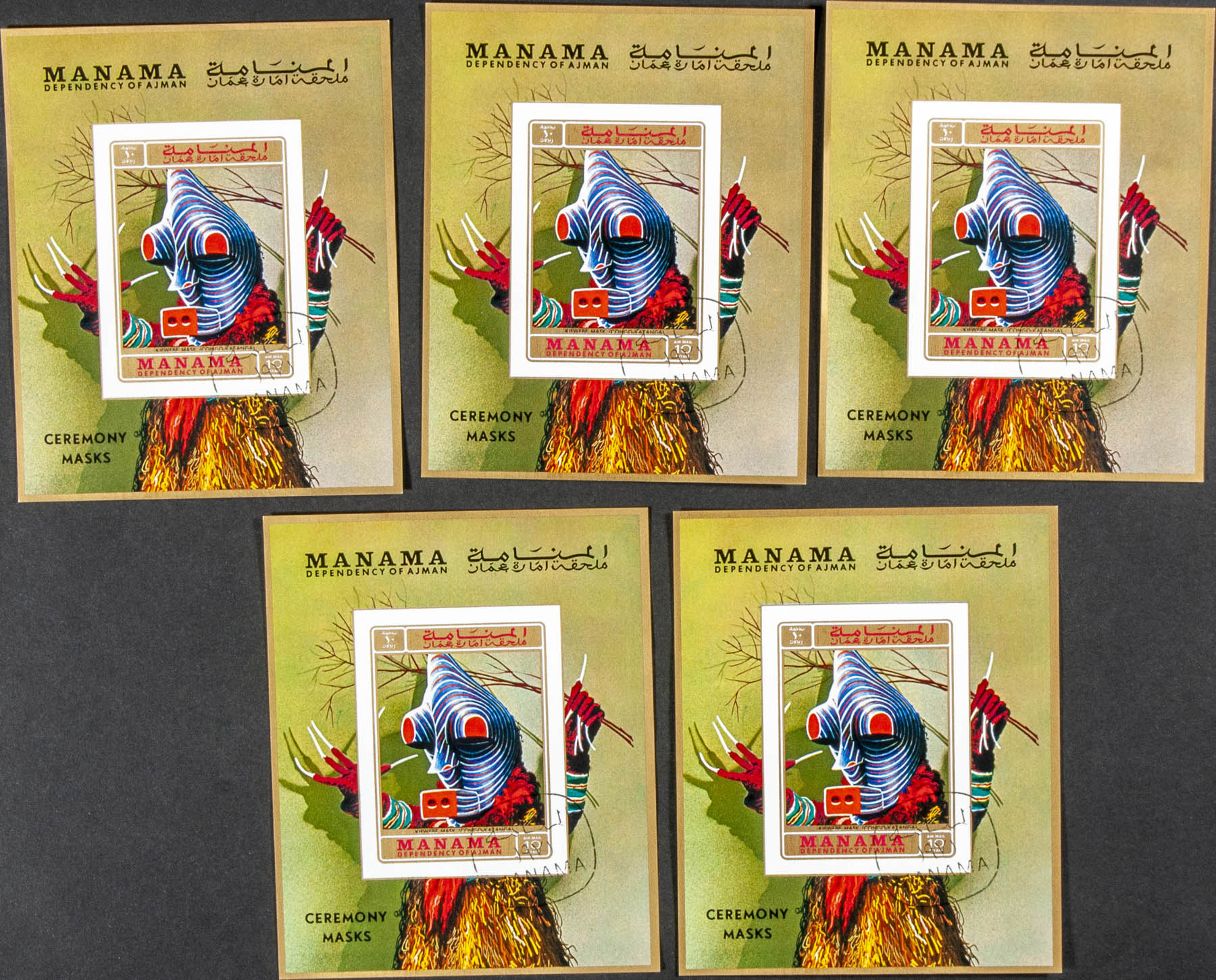 Yvert . 1972. Masks. Souvenir sheet. Group of IMPERFORATED sheets. Cancelled to order. (Michel: B140)
