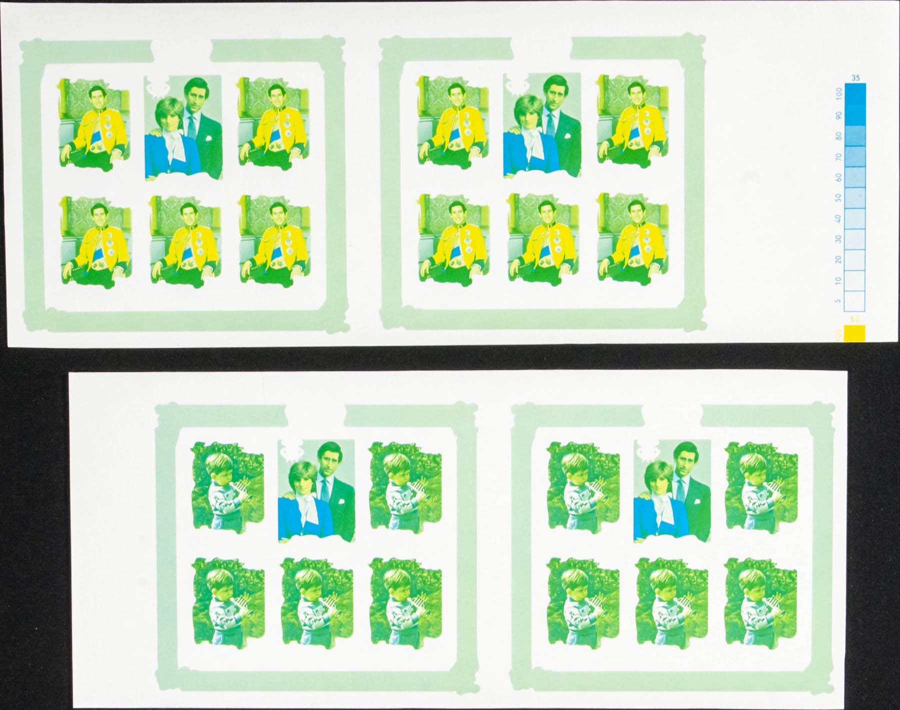 ★★Yvert 179/83. 1981. Charles and Diana wedding. Progressive plate proofs of the set.