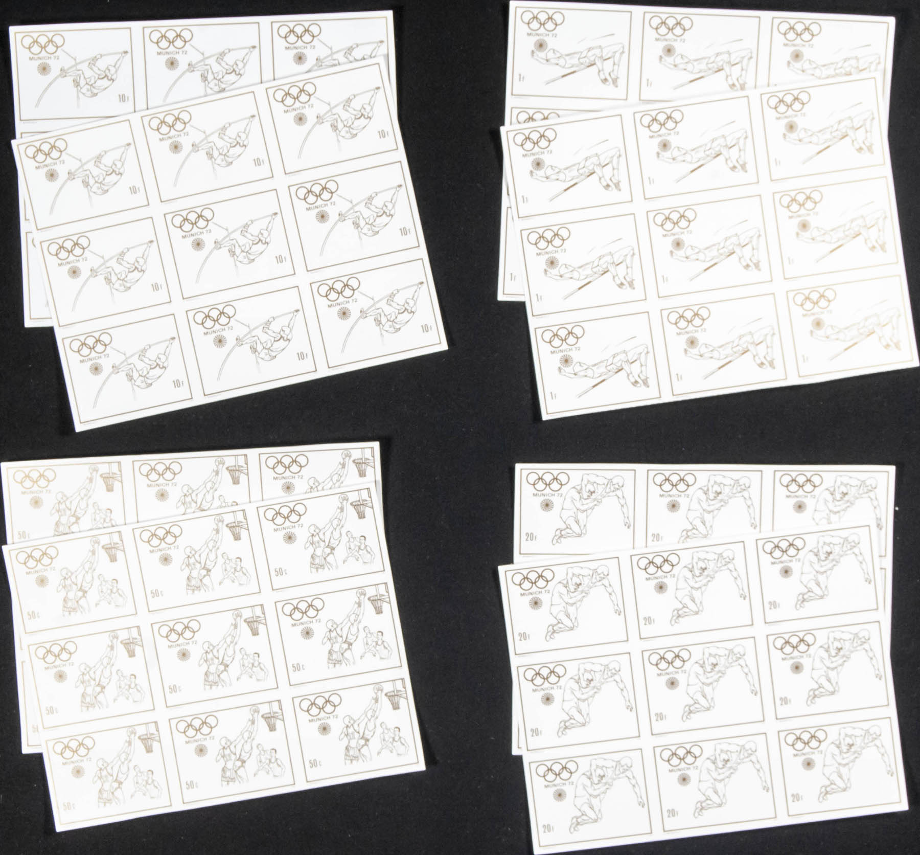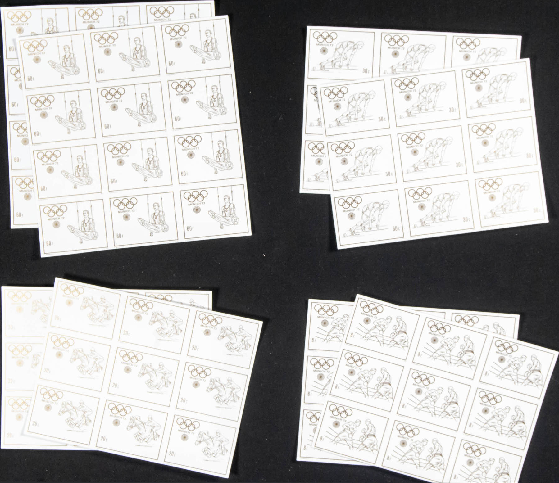 ★★Yvert 422/29. 1972. Olympic Games Munich. Group of progressive plate proofs of the set.